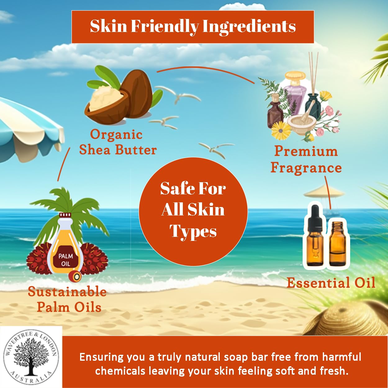 Wavertree & London Summer Spritz Scented Natural Soap (8 Bars), 7oz Moisturizing French Triple Milled Soap Bars enriched with shea butter - Pure Plant Oil Bath & Body Bars for All Skin Types