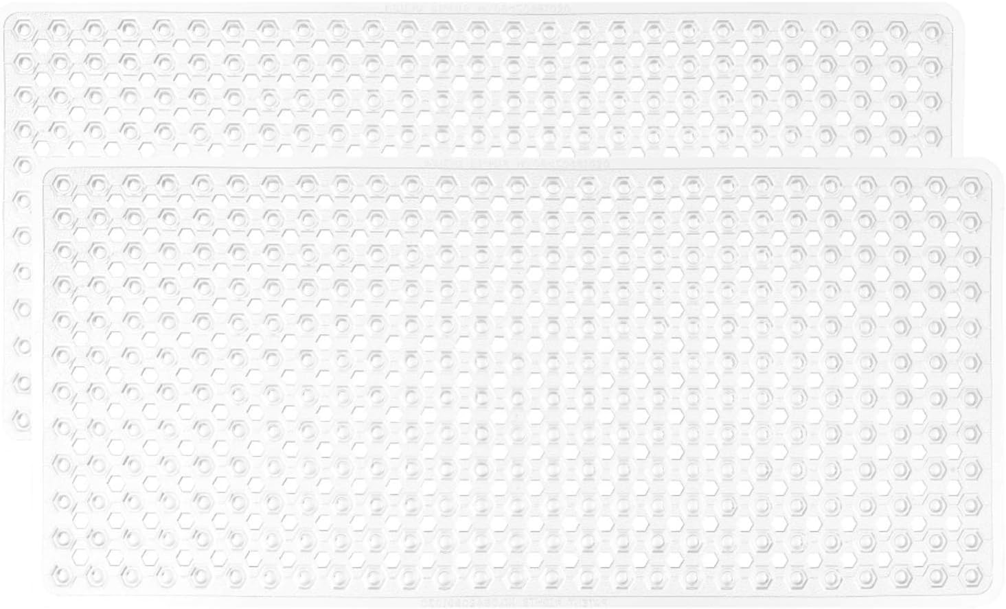 GORILLA GRIP Patented Bath Tub Shower Mat, 2 Pack, Machine Washable Bathtub Floor Liner Mats, Suction Cups and Drain Holes to Keep Tubs Clean, Soft on Feet, Bathroom Essentials, 35x16 Inch, White
