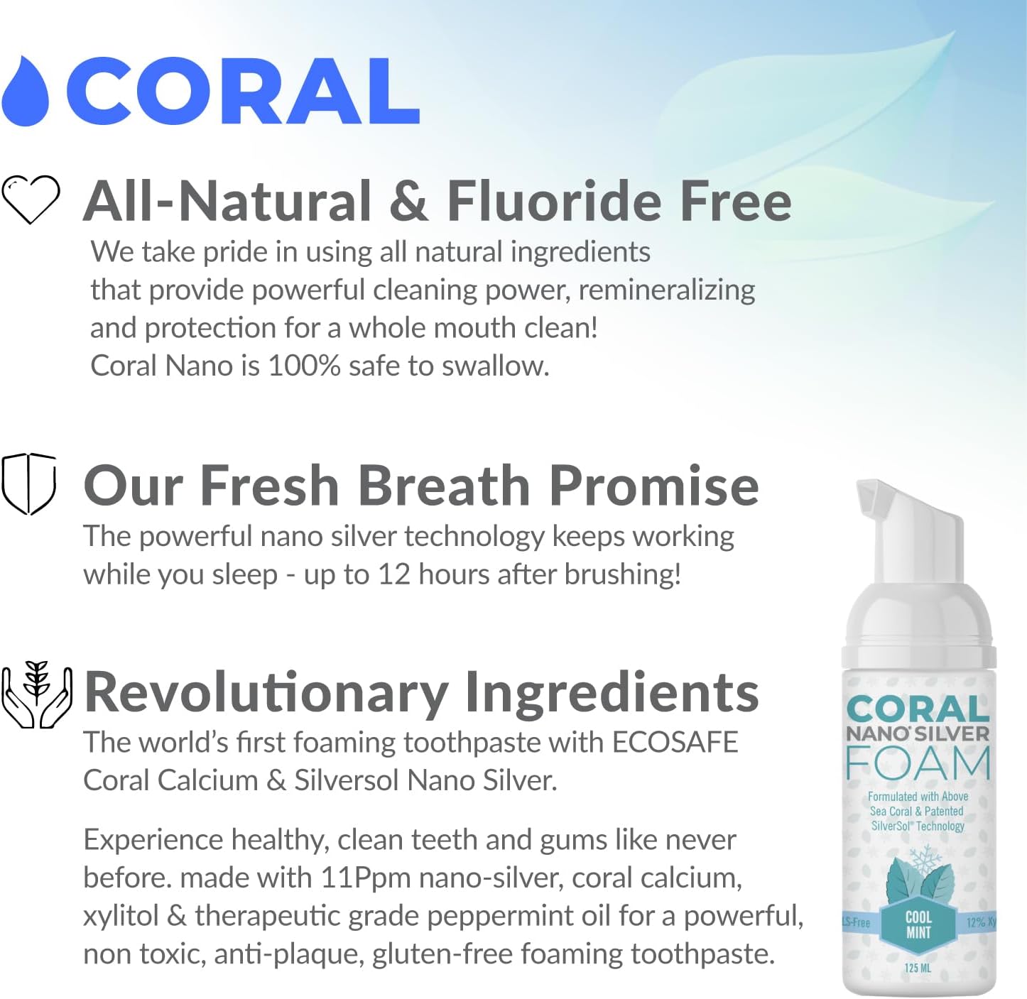 - Are you in pursuit of the perfect toothpaste? Look no further than Coral's innovative natural Fluoride free foaming toothpaste – the ultimate choice for a refreshing, natural, and deeply effective oral care routine. Formulated with the power of coral calcium, nano silver particles and Xylitol for exceptional oral care benefits.