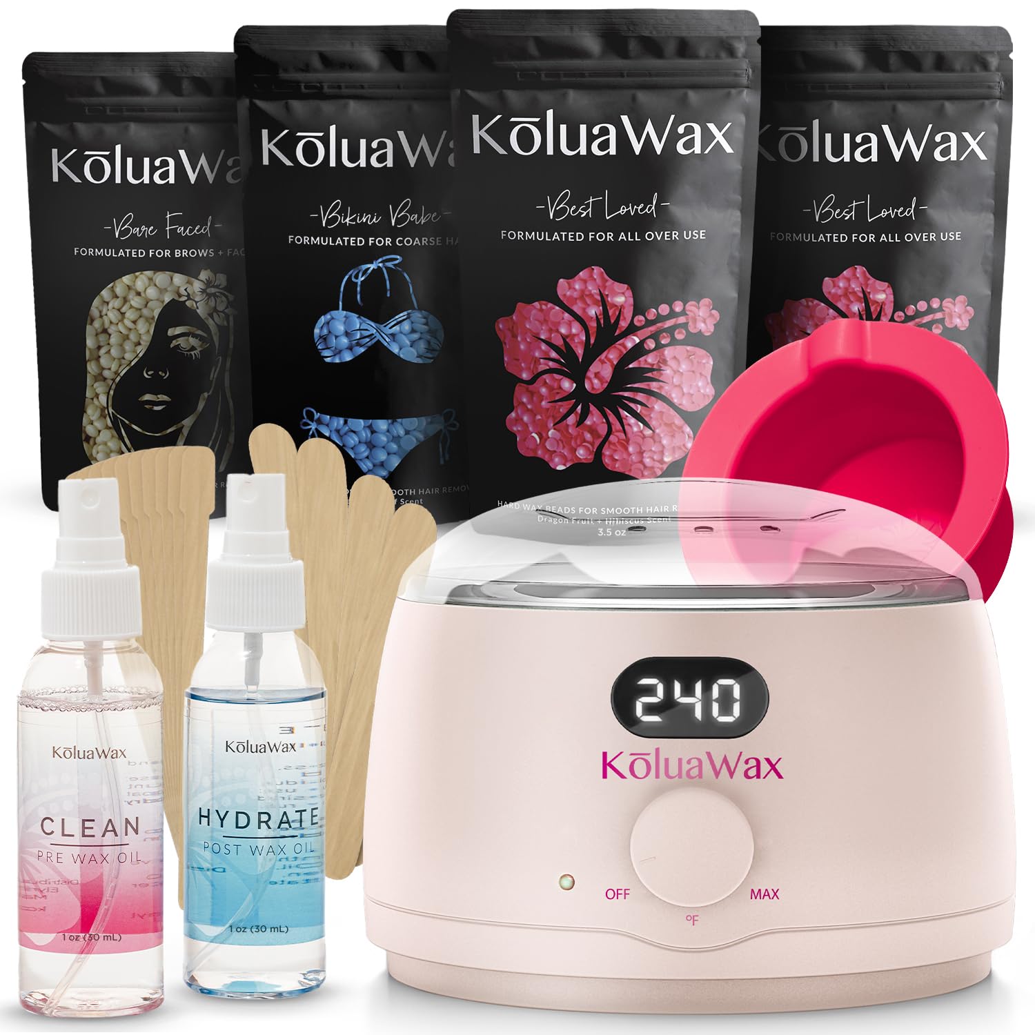 KoluaWax Premium Waxing Kit for Women - Hot Melt Wax Warmer for Hair Removal, Eyebrow, Bikini, Legs, Face, Brazilian & More - Machine + 4-Pack Hard Wax Beads + Accessories, Blush
