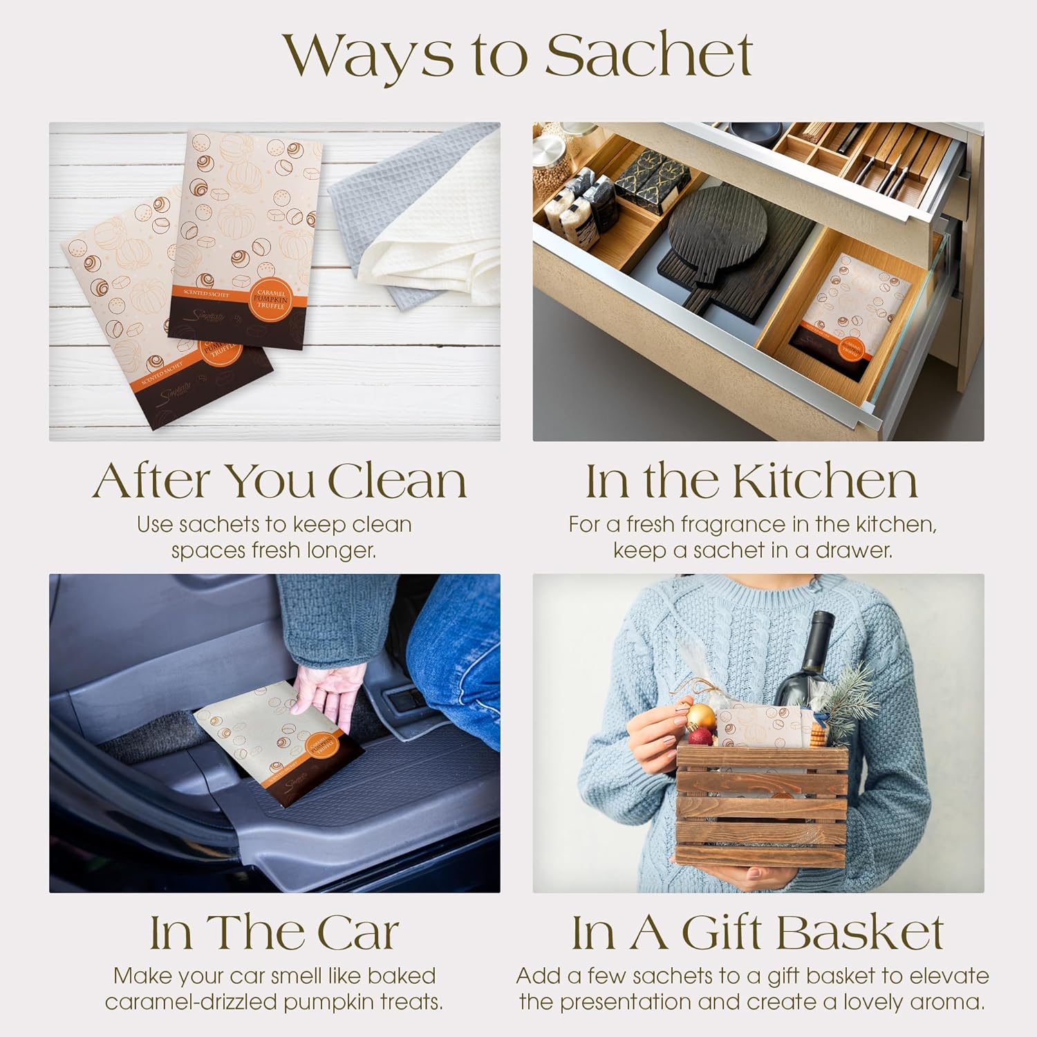 Floral Simplicity Caramel Pumpkin Truffle Scented Sachets Pack of 3, Fall & Winter - Long-Lasting Scented Bags, Home Fragrance, Air Freshener & Deodorizer for Closet, Room, or Cars, Made in USA