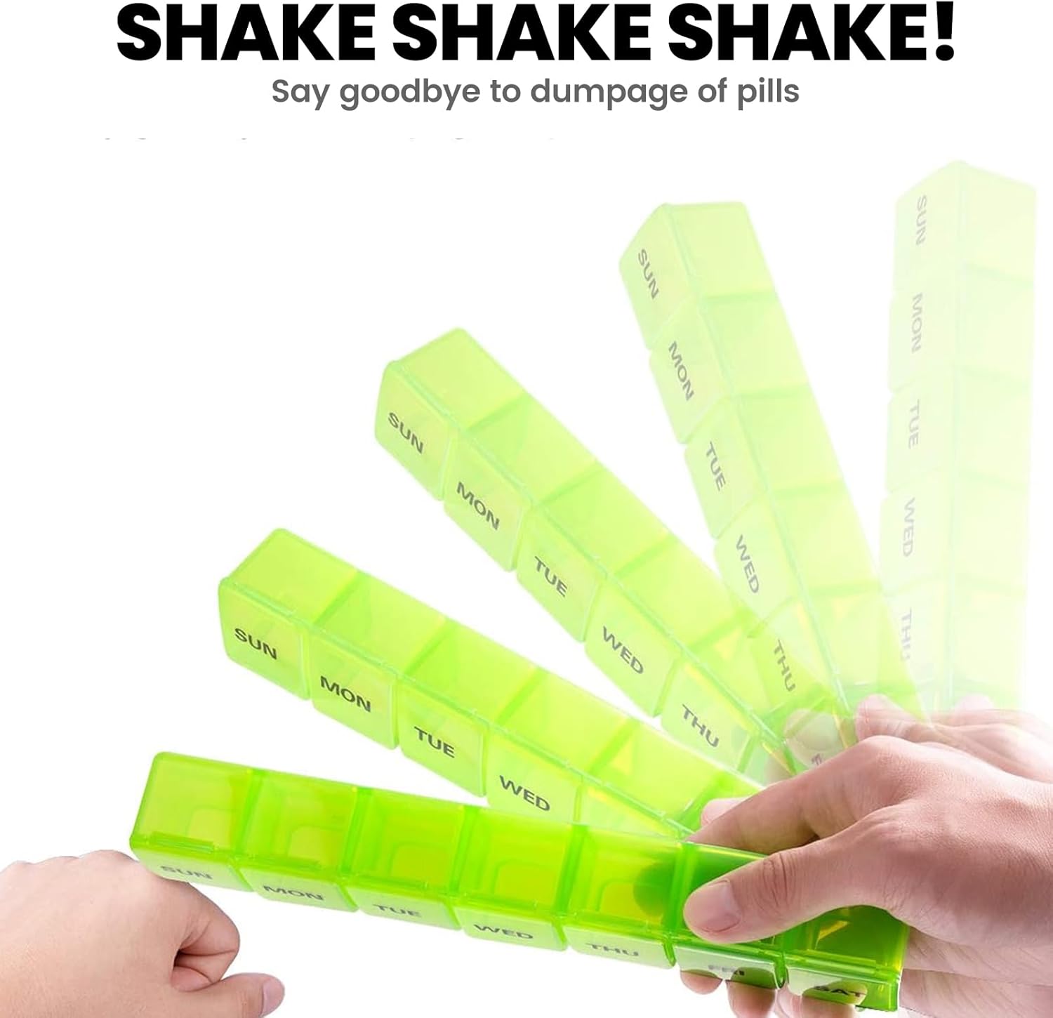 - No Need To Remember & Durable: This 7-day pill box features bold marks for the week, making it simple to track your pills without needing to remember. The upgraded printing ensures that these marks remain durable, lasting up to 10,000 uses without showing any wear and tear.