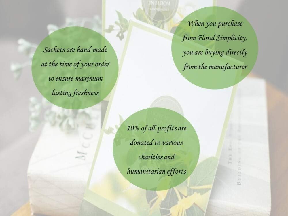- HANDCRAFTED WITH CARE IN USA : Made by American hands from start to finish, our sachets are crafted with recycled and biodegradable materials, keeping environmental impact minimal. Since scent is personal and can’t be experienced beforehand, return shipping isn’t offered. Your purchase supports charitable efforts. spreading kindness.