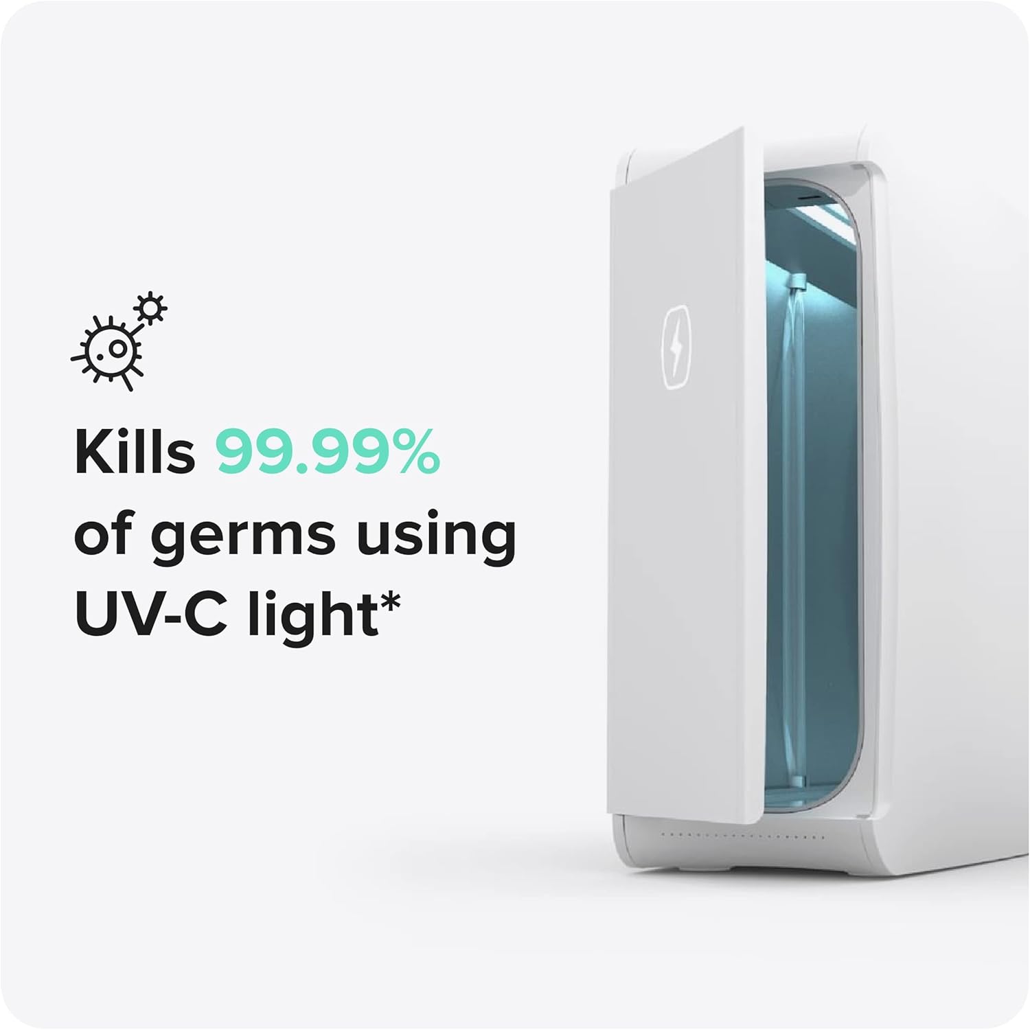 - KILLS 99.9% OF GERMS: The powerful UV-C lights inside HomeSoap kill germs without sprays, solvents or chemical cleaning agents. With bulbs on both the top and the bottom, our devices achieve 360-degree disinfection , reaching tiny crevices that sprays and wipes cannot.