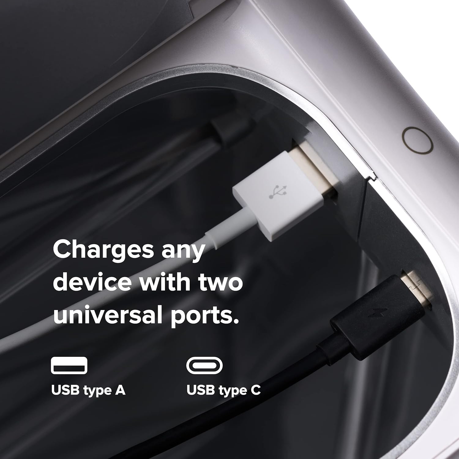 - CHARGED AND READY TO GO: Now you can combine the daily habits of cleaning your devices and charging them. The HomeSoap features two universal ports to keep your batteries topped off and fully charged.