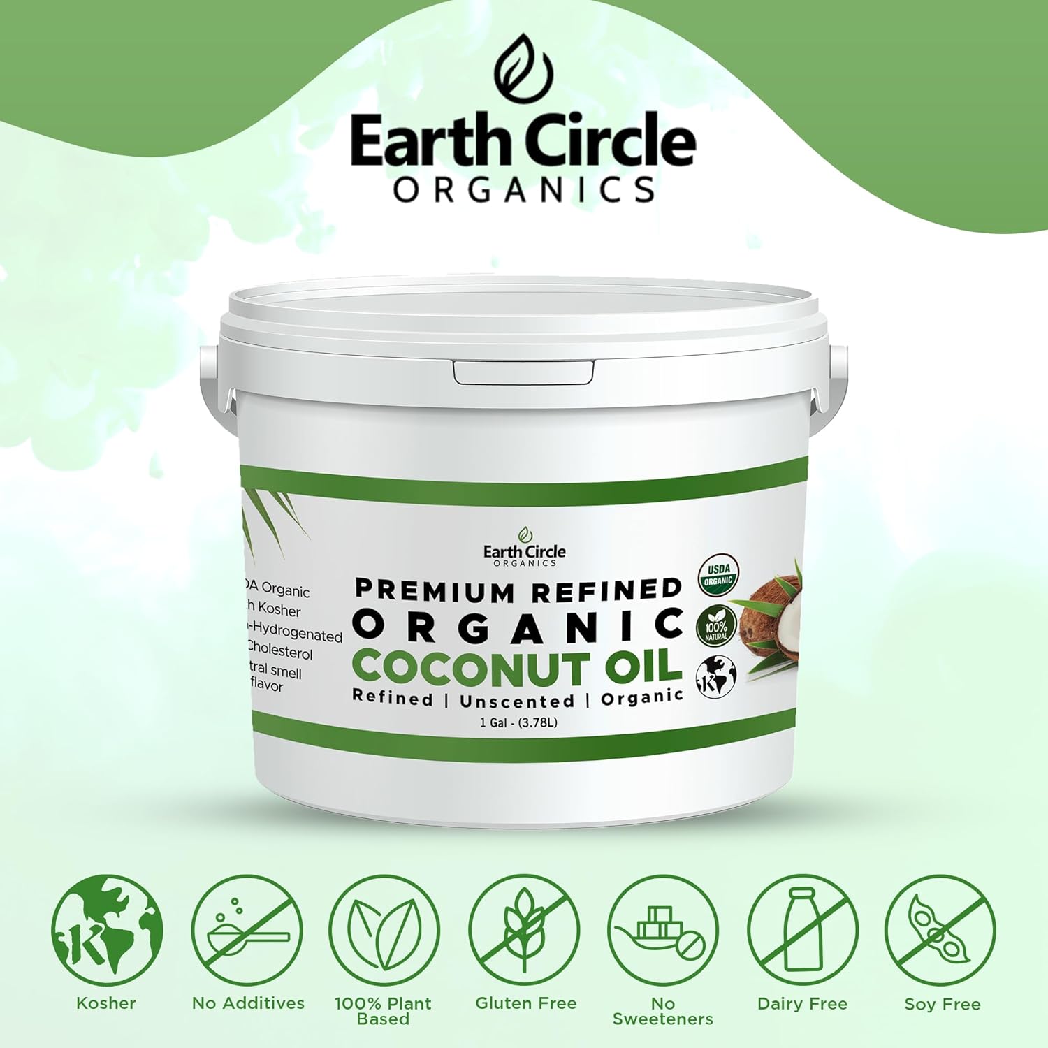 - ✅ PREMIUM COCONUT GOODNESS: Steam refined from fresh, tropical green coconuts, using only the world’s highest-quality coconuts, our Ultra-Premium Coconut cooking oil is Kosher, and gluten free, sustainably grown without the use of unnecessary additives or nastiness, steam refined and ethically sourced and harvested from the Philippines, Aceite de coco bio. Earth Circle Organics Refined Coconut Oil delivers zero flavor and zero smell that’s nutrient rich.