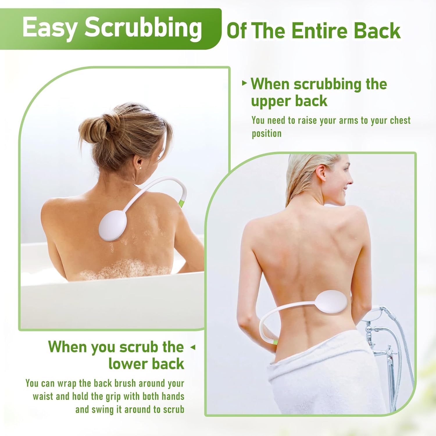 Fanwer 27.5” Back Bath Brush Long Handle for Shower and Silicone Body Scrubber, Shower Back Scrubber with Curved Handle for Elderly, Disabled, Limited Mobility, Post-Surgery, Frozen Shoulder