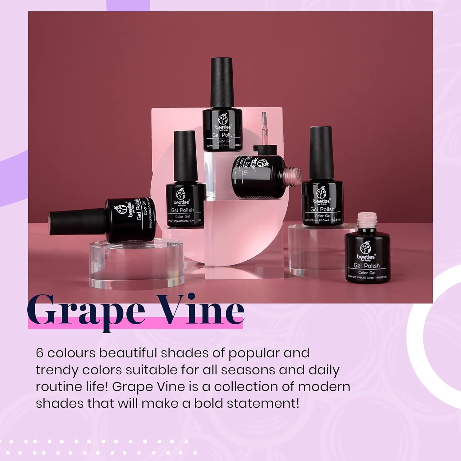 beetles Gel Polish Grape Vine Purple 6 Colors Purple Lavender Dark Lilac Glitter Pink Nail Polish Soak Off Uv LED Gel Nail Kit Salon Diy Nail Art Manicure Salon Home Gifts for Women