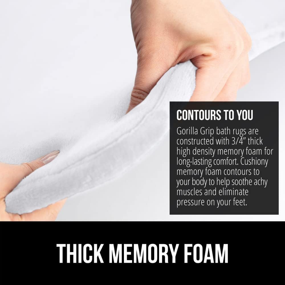 GORILLA GRIP Thick Memory Foam Bath Rugs, Soft Absorbent Velvet Bathroom Mats, Durable Dots on Underside, Machine Washable Bathmat, Carpet Rug Room Decor for Shower Floor, 36x24 Mat, White