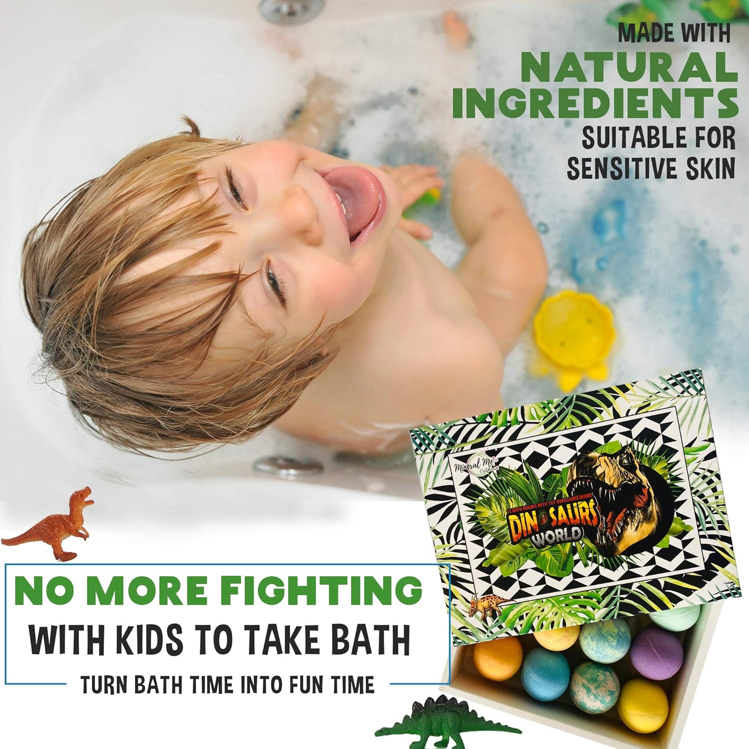 - Natural Ingredients - Dinosaur bath bombs for kids are made with Organic shea butter and essential oils. These toddler bath bombs contain no artificial flavors or colors, created for sensitive skin