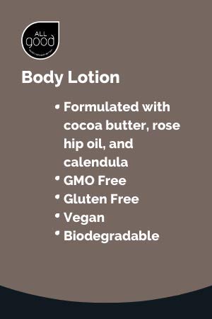 - COCONUT LOTION - All Good Organic Body Lotion repairs and rejuvenates your dry skin for a youthful, non-greasy feel using organic cocoa butter, rosehip, calendula, and other botanical ingredients. We’ve taken care to produce the most soothing organic lotion possible with nature’s most potent ingredients and medicinal plants.