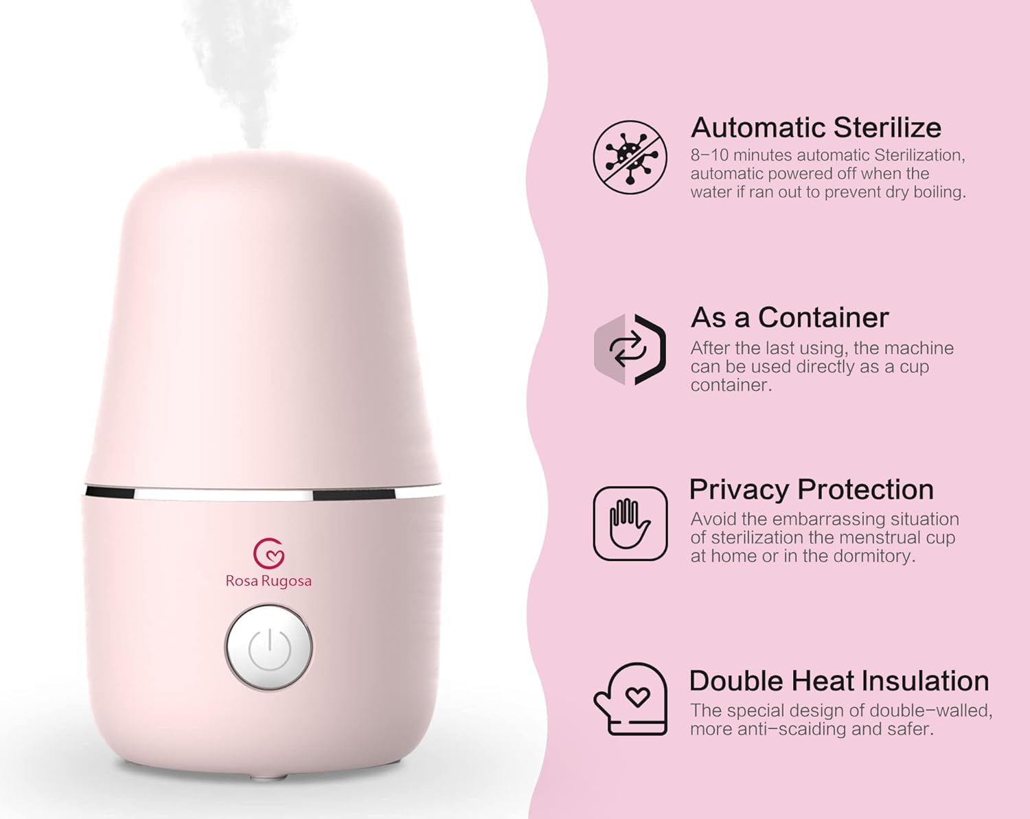 ROSA RUGOSA Menstrual Cup Sterilizer, Steamer Cleaner 3-in-1 for Cleans, Dries, and Stores Your Period Cup- Auto Shut-Off- Leak-Free - Eliminates up to 99.9%