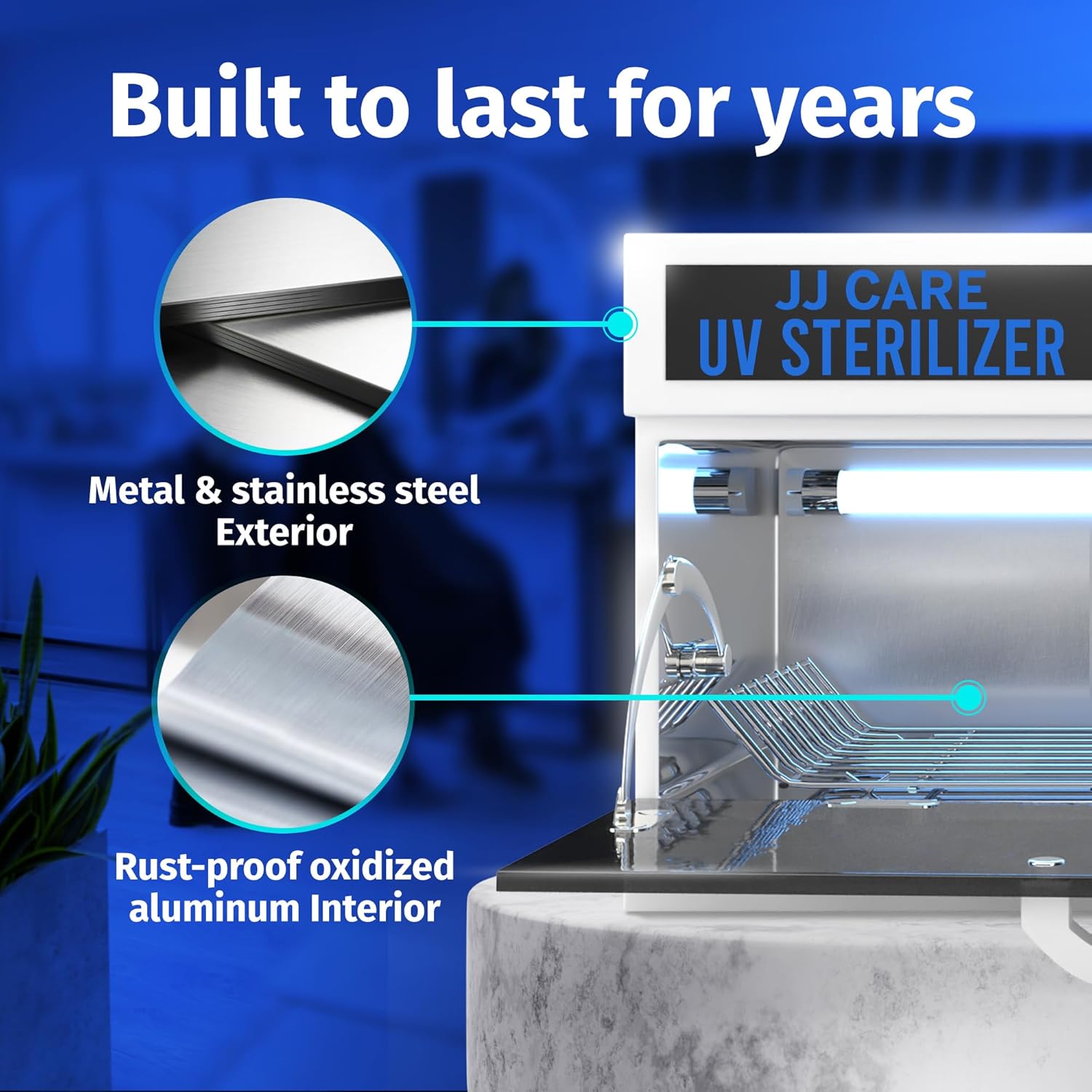 - Exceptional Sanitization Power – The JJ CARE sanitizer uses advanced UV technology to thoroughly clean your tools, cleaning your tools in just 30 minutes. Enjoy a fast, chemical-free solution for ultimate cleanliness and peace of mind.