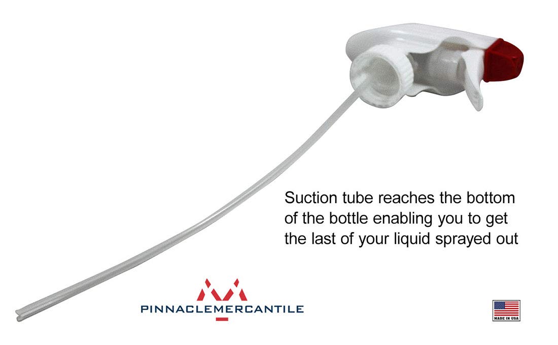 - ADJUSTABLE TRIGGER SPRAYER DESIGN- The sprayer exterior sides fit your hand comfortably, eliminating hand fatigue Adjustable red nozzle turns easily letting you switch from mist, stream or to off; Pull trigger has a short effortless squeeze reducing finger fatigue ; Suction dip tube reaches the bottom of the bottle avoiding waste and spraying every last drop!