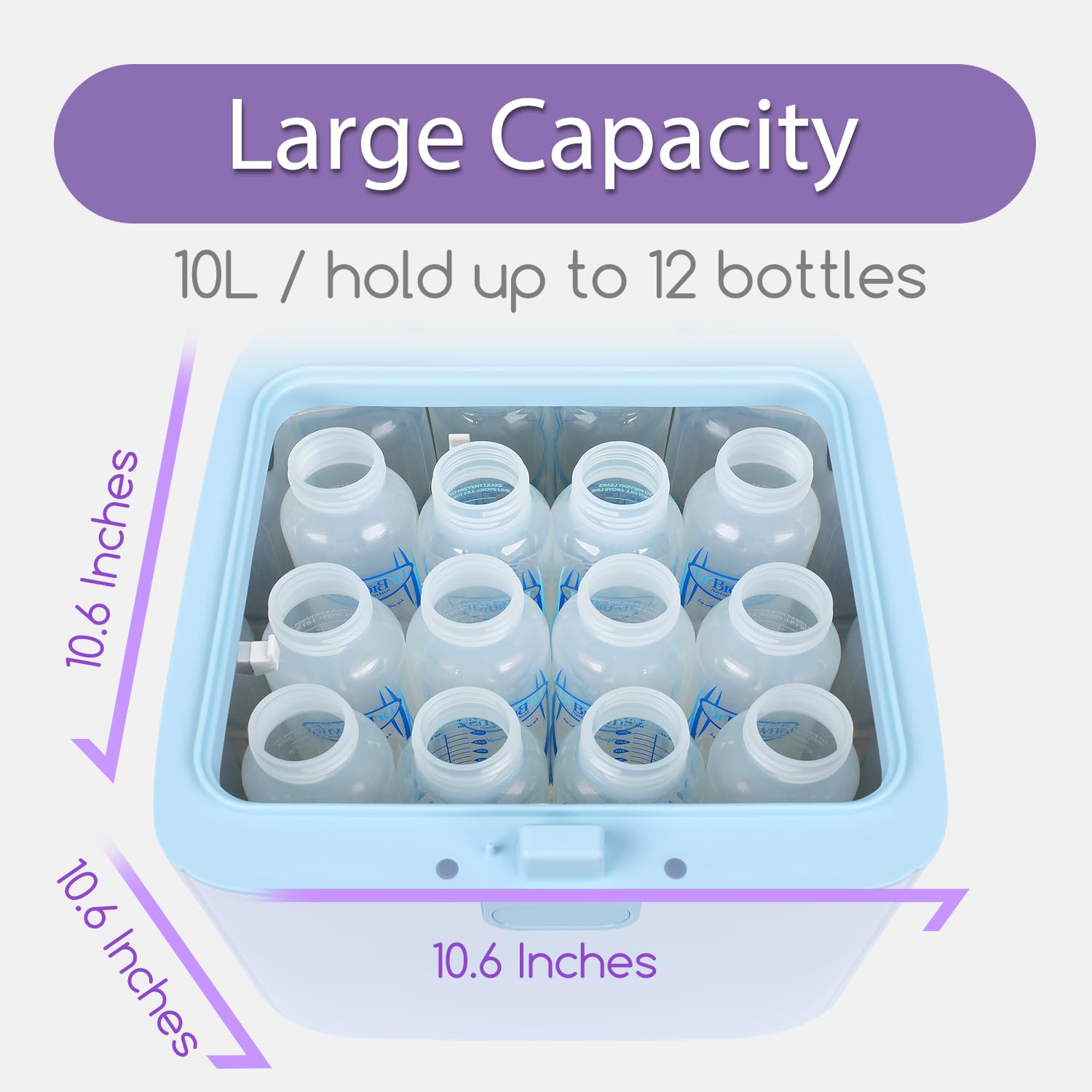 - Large Capacity: Our 10L UV sanitizer and dryer have a spacious interior that can accommodate a large number of items including 11 baby bottles. Compared to steam sanitization, water & chemical-free, UV Sanitization with a lifespan of 6000 hours. Make your feeding life easier.