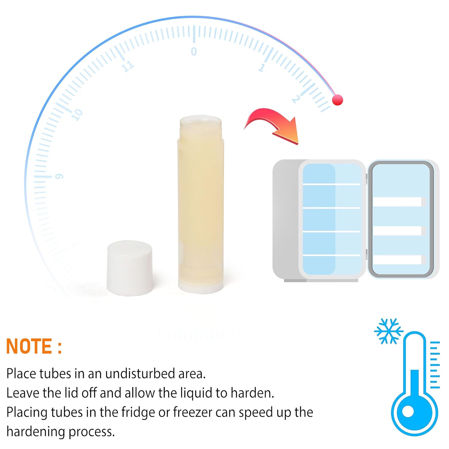 - 【SAFE MATERIAL】These lip balm container tubes are made of food-grade plastic, odor-free, BPA free and non-toxic; High quality material ensures no warping when pouring hot mixes into the tubes; No material deformation or cracks during the cooling process