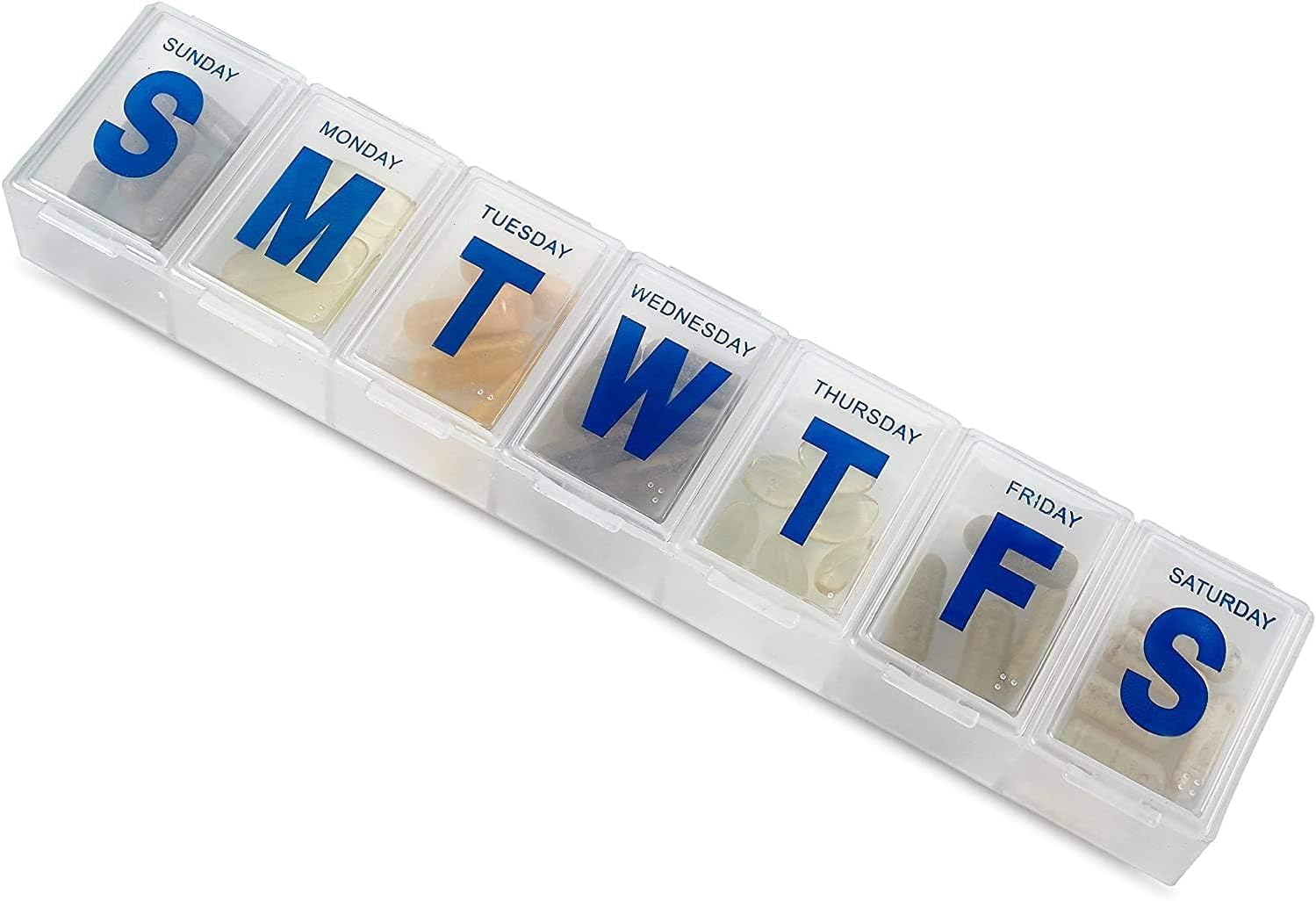 - ATTRACTIVE DESIGN: Our pill organizer looks very attractive as it comes in bright blue letters, unlike other dull and boring pill containers.