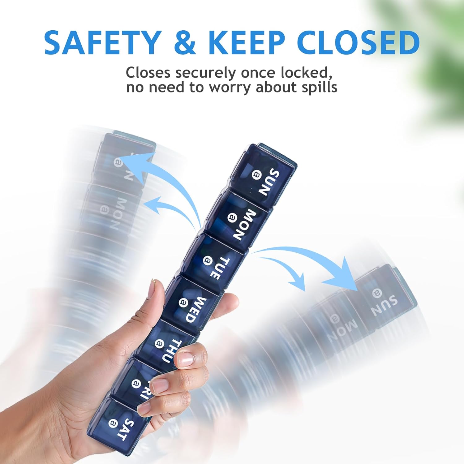 - EASY-TO-READ & DURABLE PRINTING: This 7 day pill organizer features bold, high-quality day markings that remain clear and legible even after long-term use. The upgraded printing resists fading and rubbing off, making it easy to track your pills every day without worrying about wear or peeling.