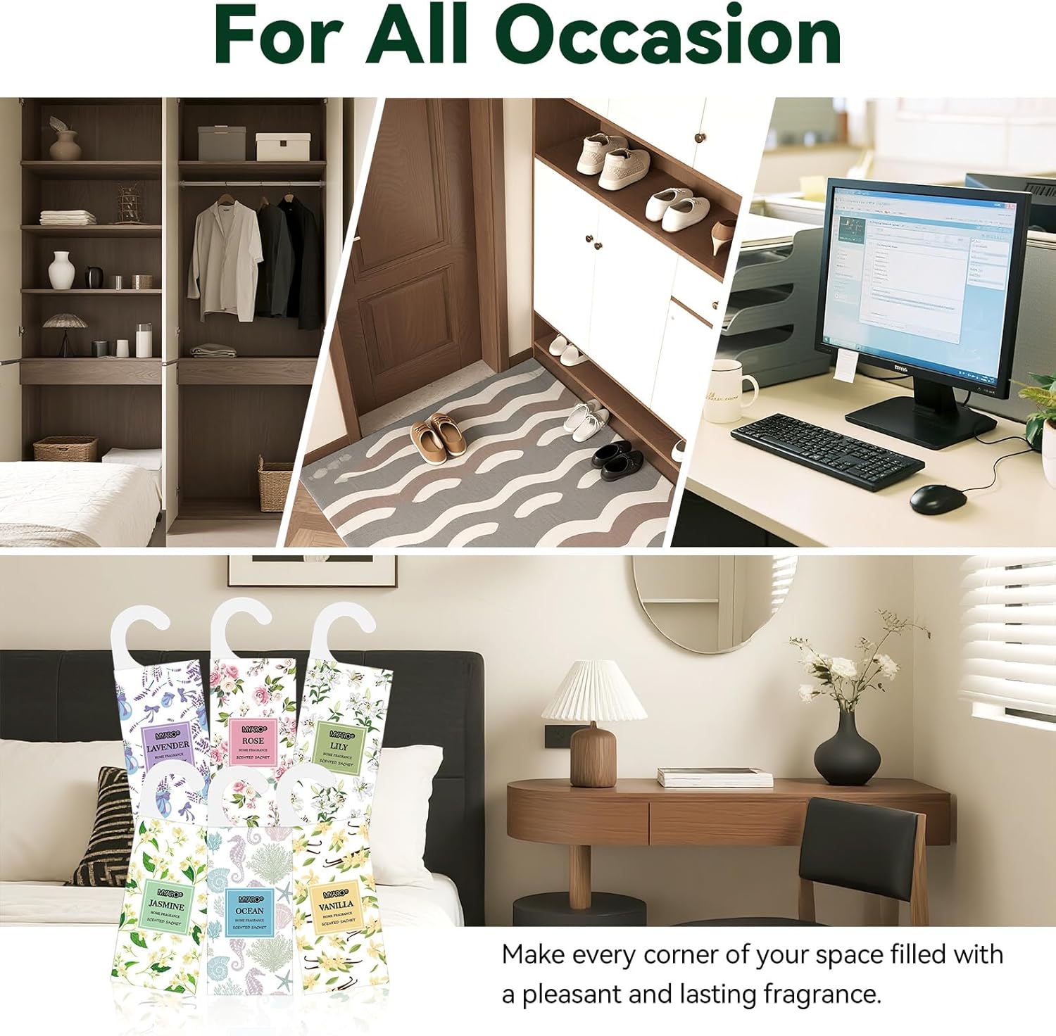 MYARO 12 Packs Large Sachets for Drawers and Closets, Large Hanging Sachet Bags Closet Air Fresheners Potpourri Bags Long-Lasting 6 Scents - Lavender, Rose, Jasmine, Ocean, Vanilla, Lily