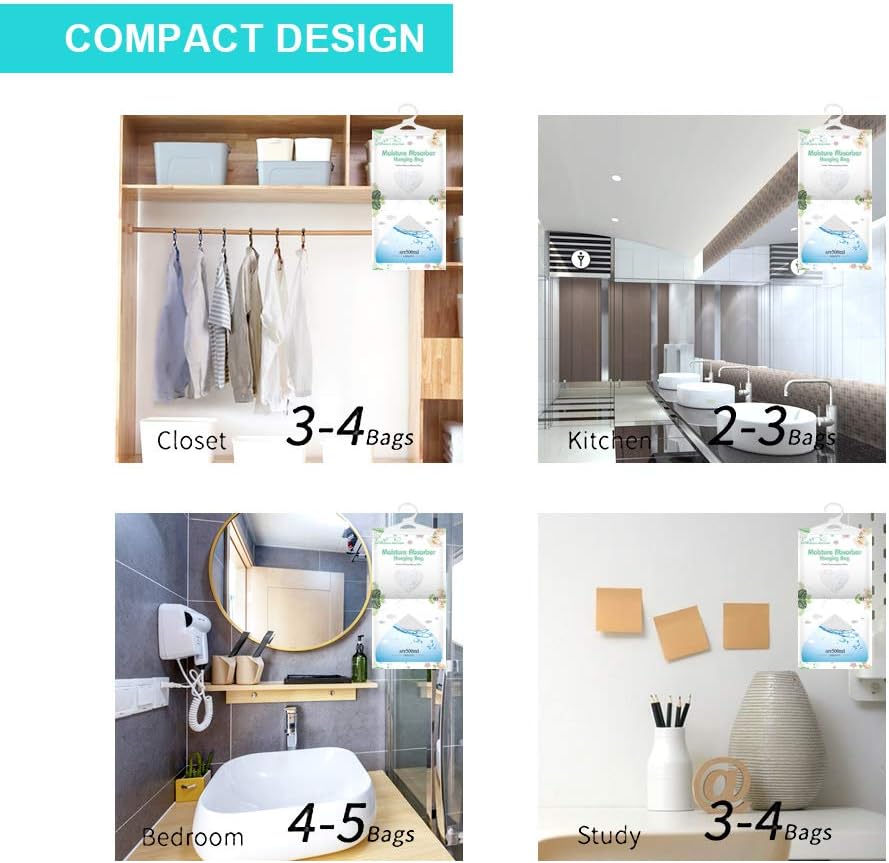 - The hanging Bag has strong hook design,is perfect dehumidifier for closet,bedroom,kitchen,bathroom.