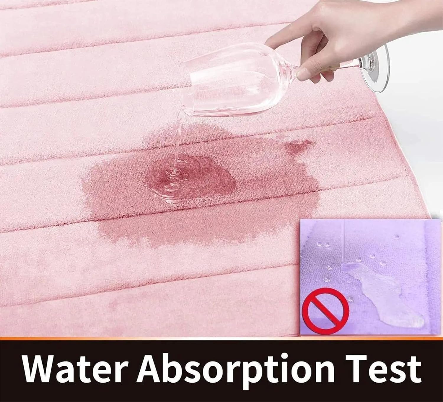 - 【Rapid Lock Absorption: Coral Velvet + Deep Foam Core】Yimobra bath mat engineered with premium coral velvet surface and deep memory foam core, our Rapid Lock technology instantly traps water. The coral velvet fibers actively pull in liquid while the high-density foam core prevents seep-through, ensuring maximum dryness after every use