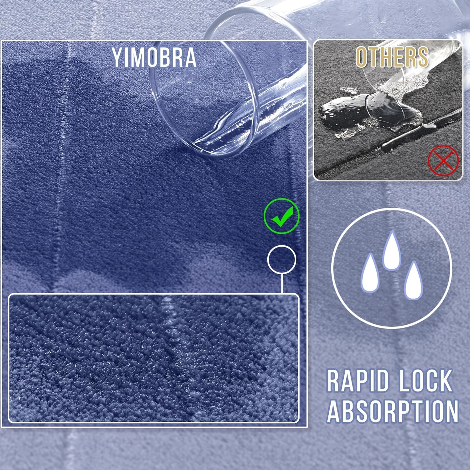 - 【Rapid Lock Absorption: Coral Velvet + Deep Foam Core】Yimobra bath mat engineered with premium coral velvet surface and deep memory foam core, our Rapid Lock technology instantly traps water. The coral velvet fibers actively pull in liquid while the high-density foam core prevents seep-through, ensuring maximum dryness after every use