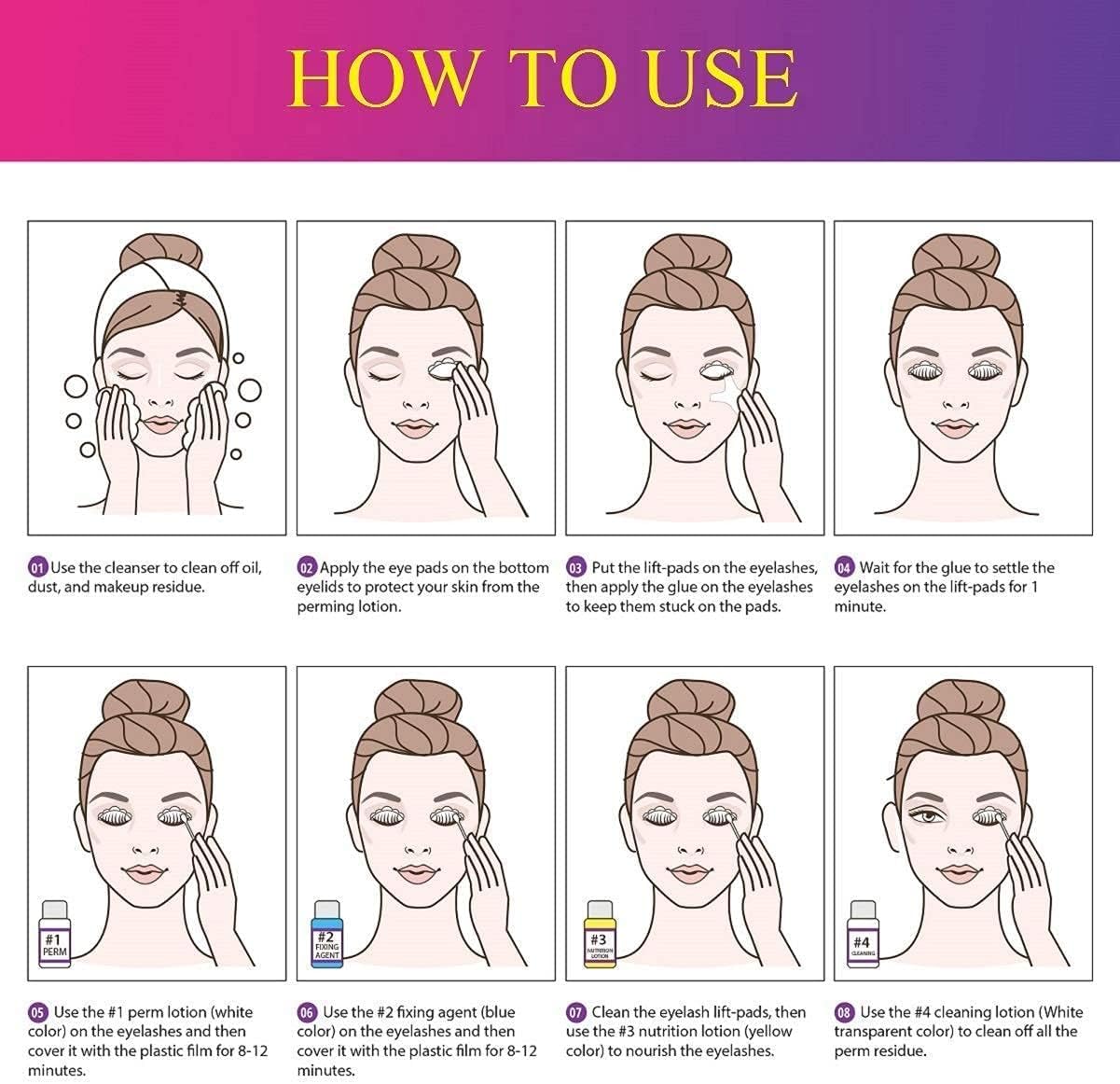 - 【EASY TO USE】: This eyelash perm kit uses silicone pads instead of the normal eyelash rollers. Easy to use, it is easier to curl the eyelashes naturally.Aslo the lash lift kit has sequential labels and instructions for use,very easy to understand.
