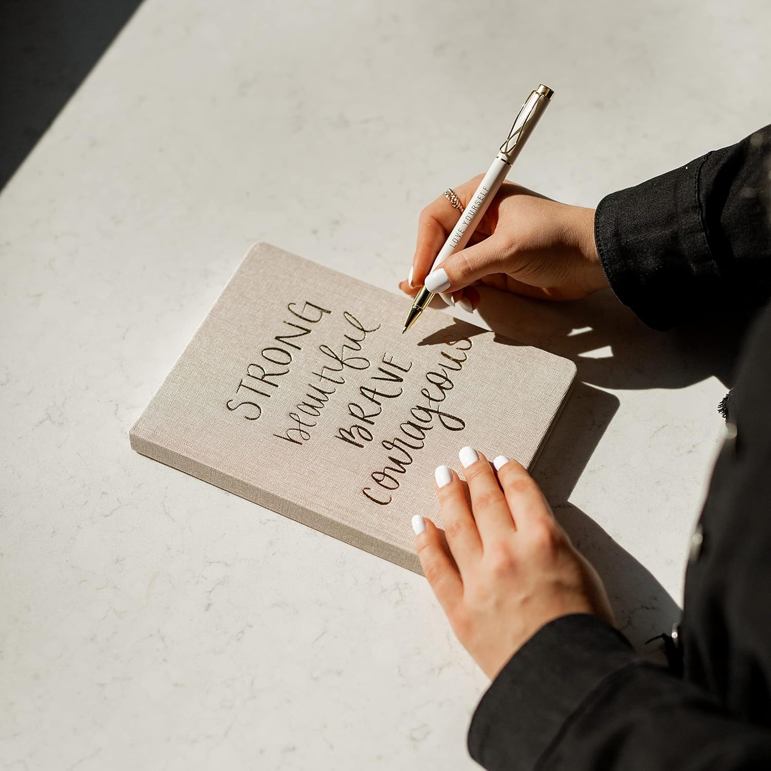 Sweet Water Decor Cute Motivational Lined Composition Notebook for Women, 100 Ruled Pages for Writing, Diary with Fabric Inspirational Cover (Strong Beautiful Brave Courageous)