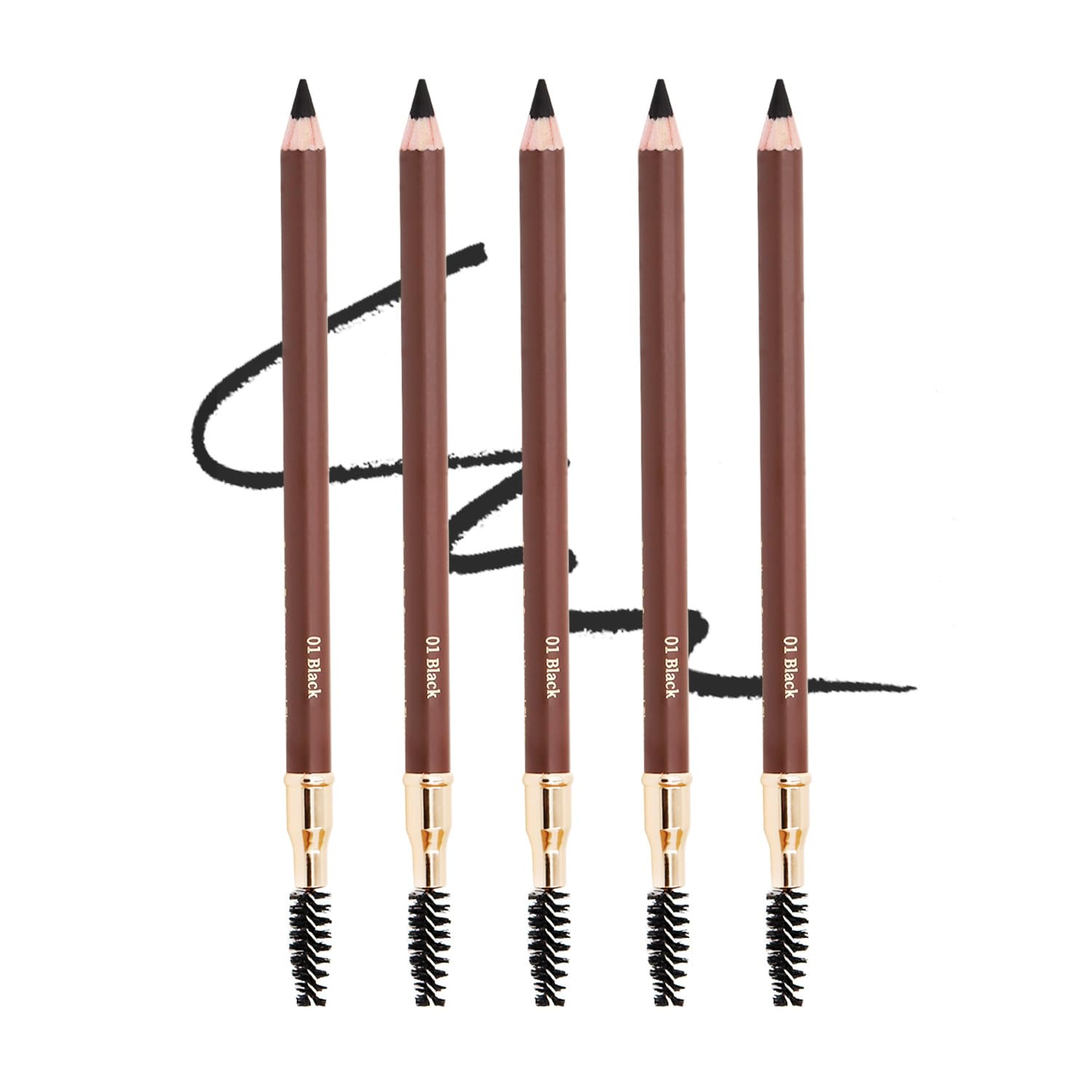 Eyebrow Pencil Longlasting Waterproof Durable Automaric Liner Eyebrow 5 Colors to Choose (5pcs, 1# Black)