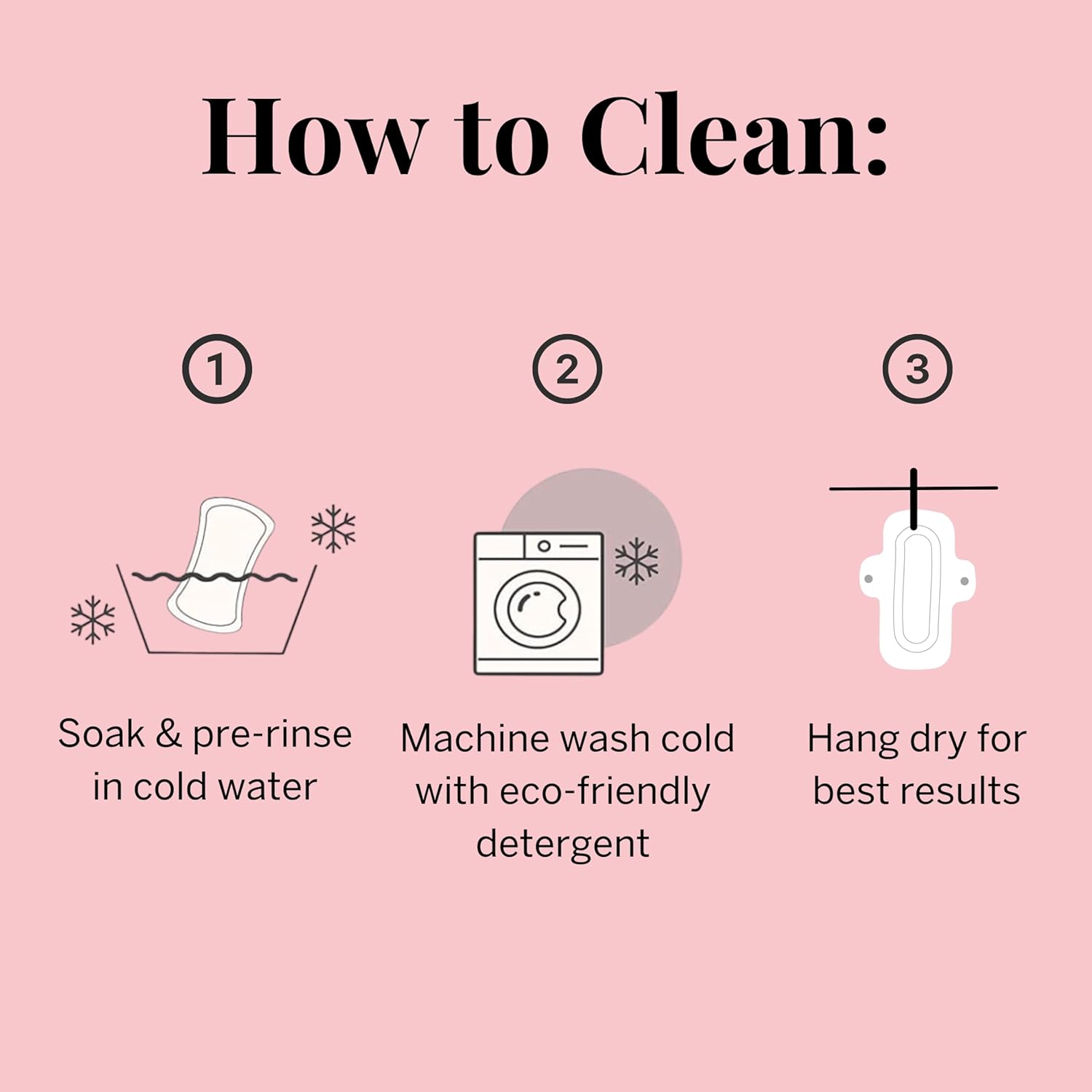 - WASH DRY AND REUSE! - Rinse immediately after use to minimize staining and throw in your wet bag (included!) until ready to wash. Include in your regular laundry routine with an eco-friendly laundry detergent. Tumble dry and avoid fabric softeners as this will affect the absorbency.