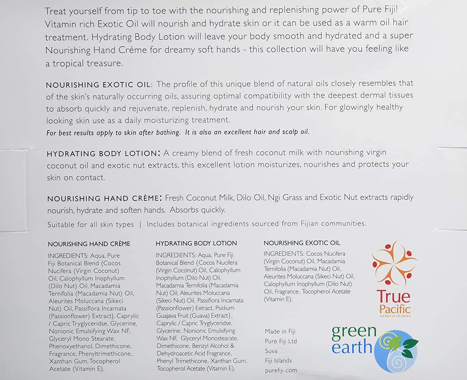 Pure Fiji Nourishing Trio, Ideal Spa Bath Gift Set for Women - Travel Kit - Includes Exotic Body Oil, Hydrating Body Lotion For Women and Nourishing Hand Cream, Guava Scent