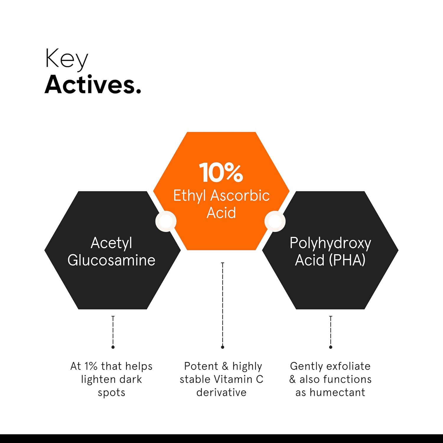 - [ A POTENT STABLE VITAMIN C FACE SERUM ]: Not all Vitamin C serums are made equal! 86% pure Vitamin C delivers maximum antioxidant benefits by helping brighten dull skin & fading dark spots. This serum is made with a stable Vitamin C derivative, 10% Ethyl Ascorbic Acid that is closest to pure Vitamin C (L-Ascorbic Acid) in molecular size and weight.