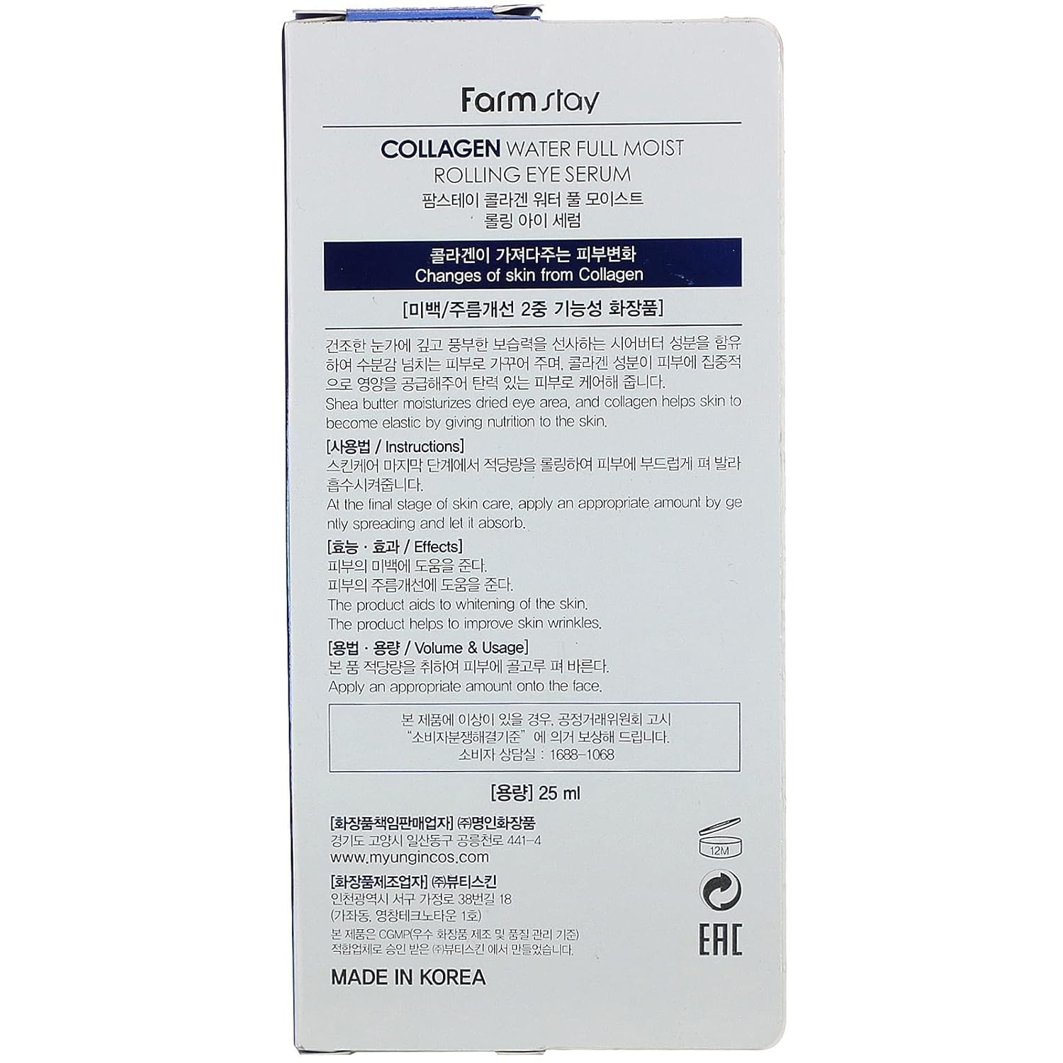 Farmstay Collagen Water Full Moist Rolling Eye Serum 0.84 fl oz | Moisturizing, Hydrating, Rolling Eye Serum, Eye cream, Skin care