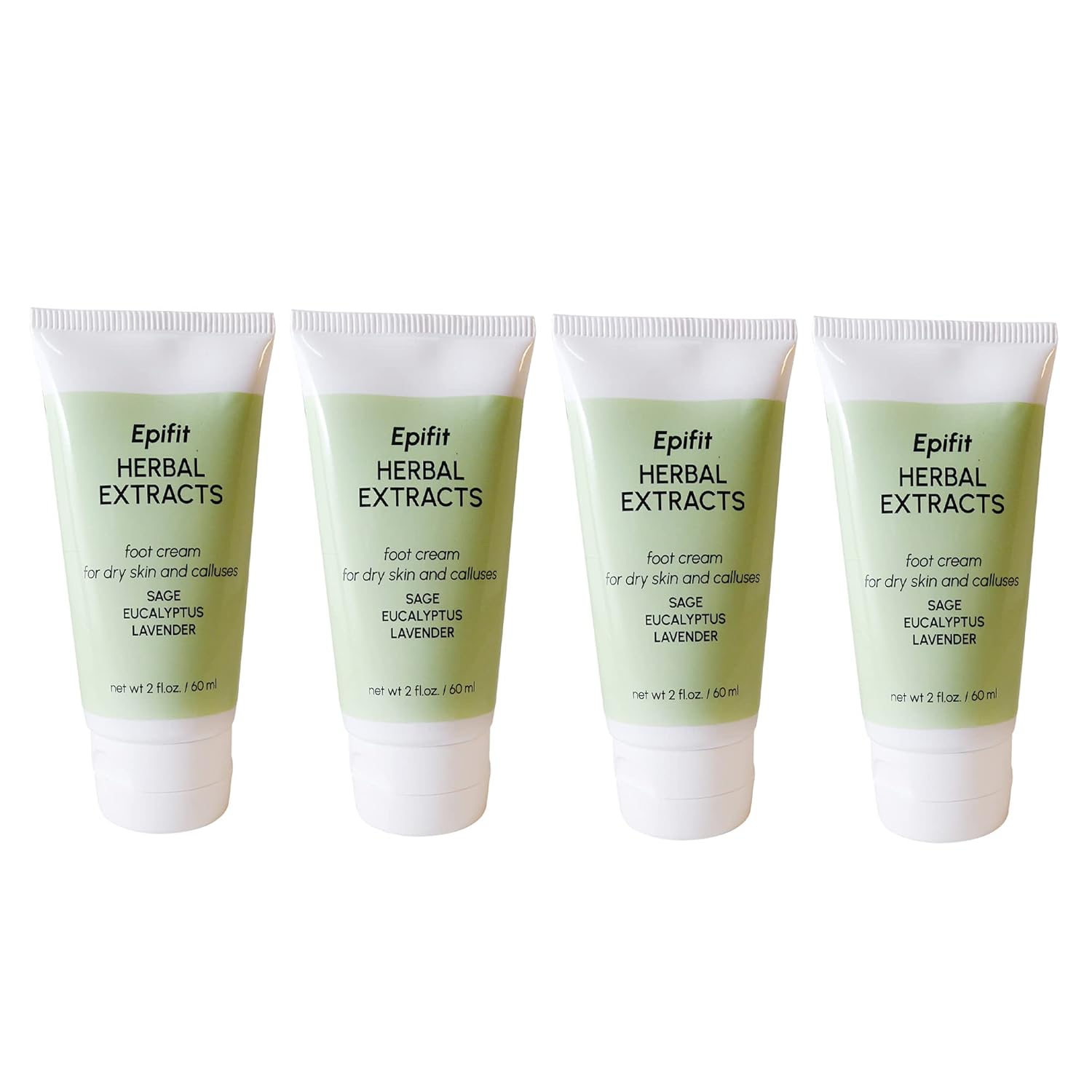 - 4 Pack Epifit Natural All Natural Moisturizer Foot Cream for Dry Skin and Calluses with Seaweed, Sage and Eucalyptus 2 fl oz / 60 ml Contains 10 natural concentrated extracts and oils that helps treating dry cracked skin: