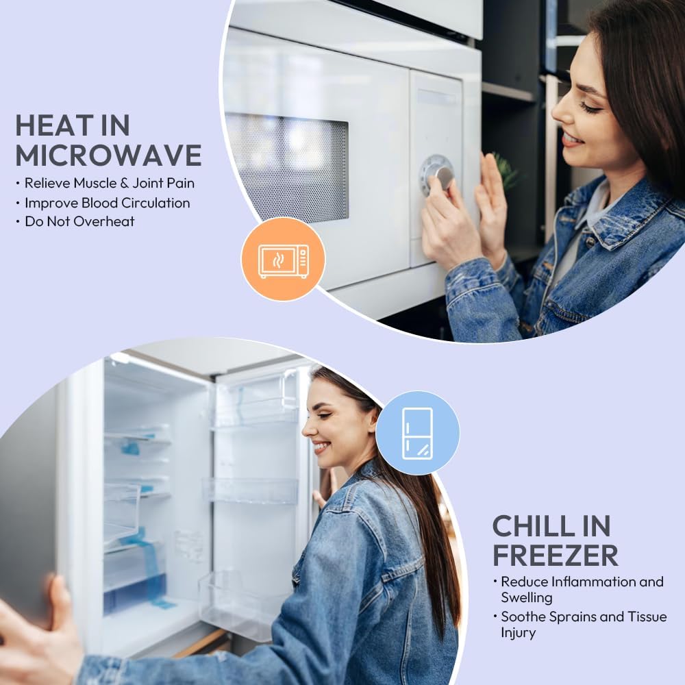 - 【Hot & Cold Compress】: Microwave the heat pad for 60s and you can enjoy 20 min soothing moist heat therapy to reduce inflammation, stress, tension, and pain by promoting circulation. Cool the shoulder heating pads microwave in freezer to get a pleasant coldness to reduce swelling due to strains and sprains.