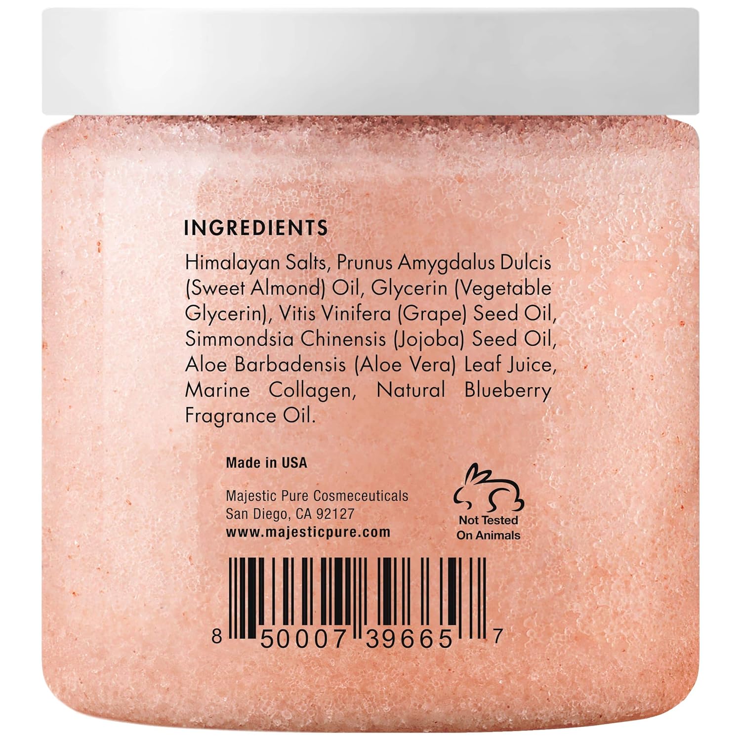 MAJESTIC PURE Himalayan Pink Salt Body Scrub with Collagen and Sweet Almond Oil | Exfoliating Scrub for Skin Care, Stretch Marks, Acne, Cellulite | 10 oz