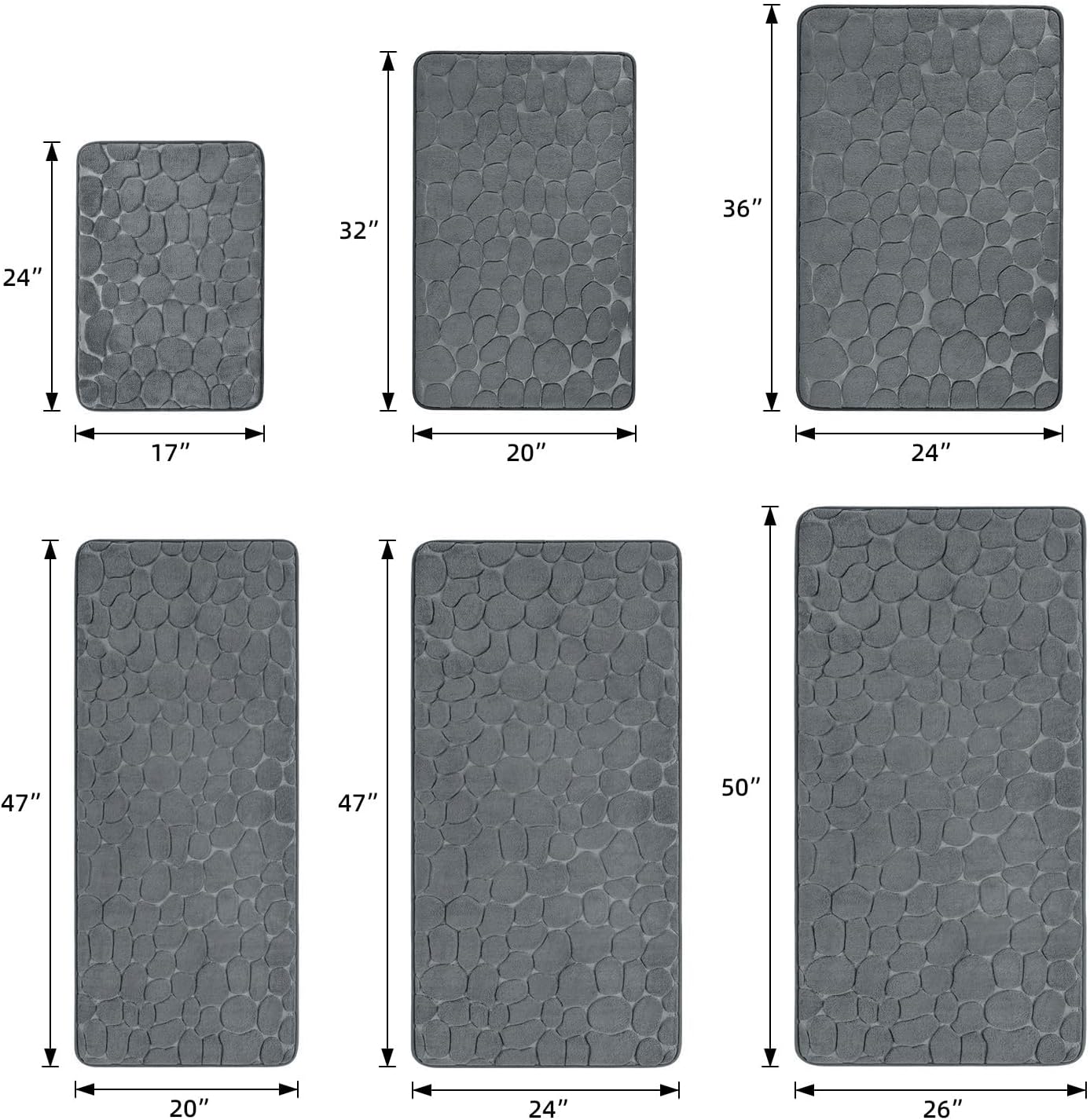 YIHOUSE Memory Foam Cobblestone Rugs Super Water Absorbent Bath Mats for Bathroom Machine Washable Bath Rugs(20x32,Dark Gray)