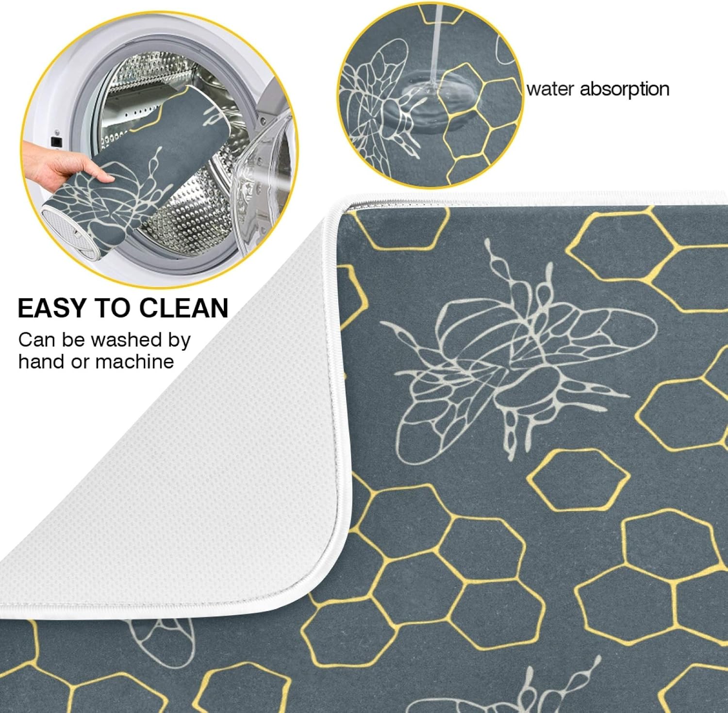 Dish Drying Mat for Kitchen Counter Bees and Golden Hive Absorbent Microfiber Drying Pad Dish Drainer Mat 18 x 16 Inch Reversible Bottles Dish Dry Pad