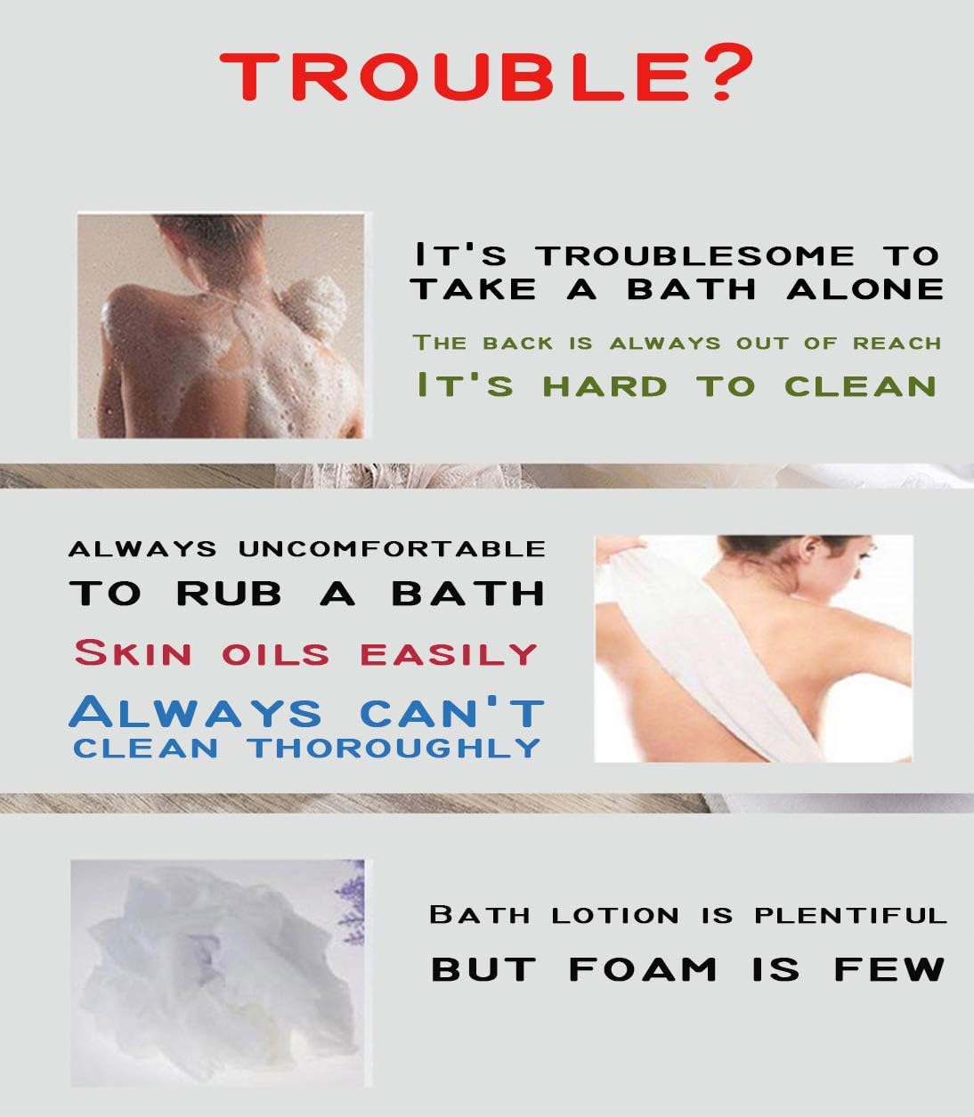 - ✔️USE FLEXIBLE: The mesh of bath sponge was soft and durable enough to used on the most delicate skin. would never scratch your skin. It also can effectively clean the skin and dirt. Perfect for cleaning the back, neck, shoulders, feet and hard to reach areas. the durable shower sponges that will not fall apart