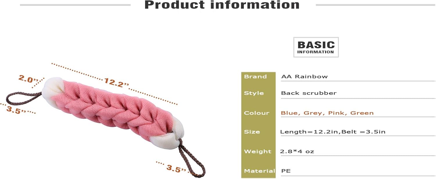 AARainbow 4 Packs Long Stretch Back Sponge with Rope Handles Back Scrubber Body Sponges for Bathing, Bath Shower Mesh Sponge Body Deep Cleaning for Men & Women (Blue+Grey+Green+Pink)