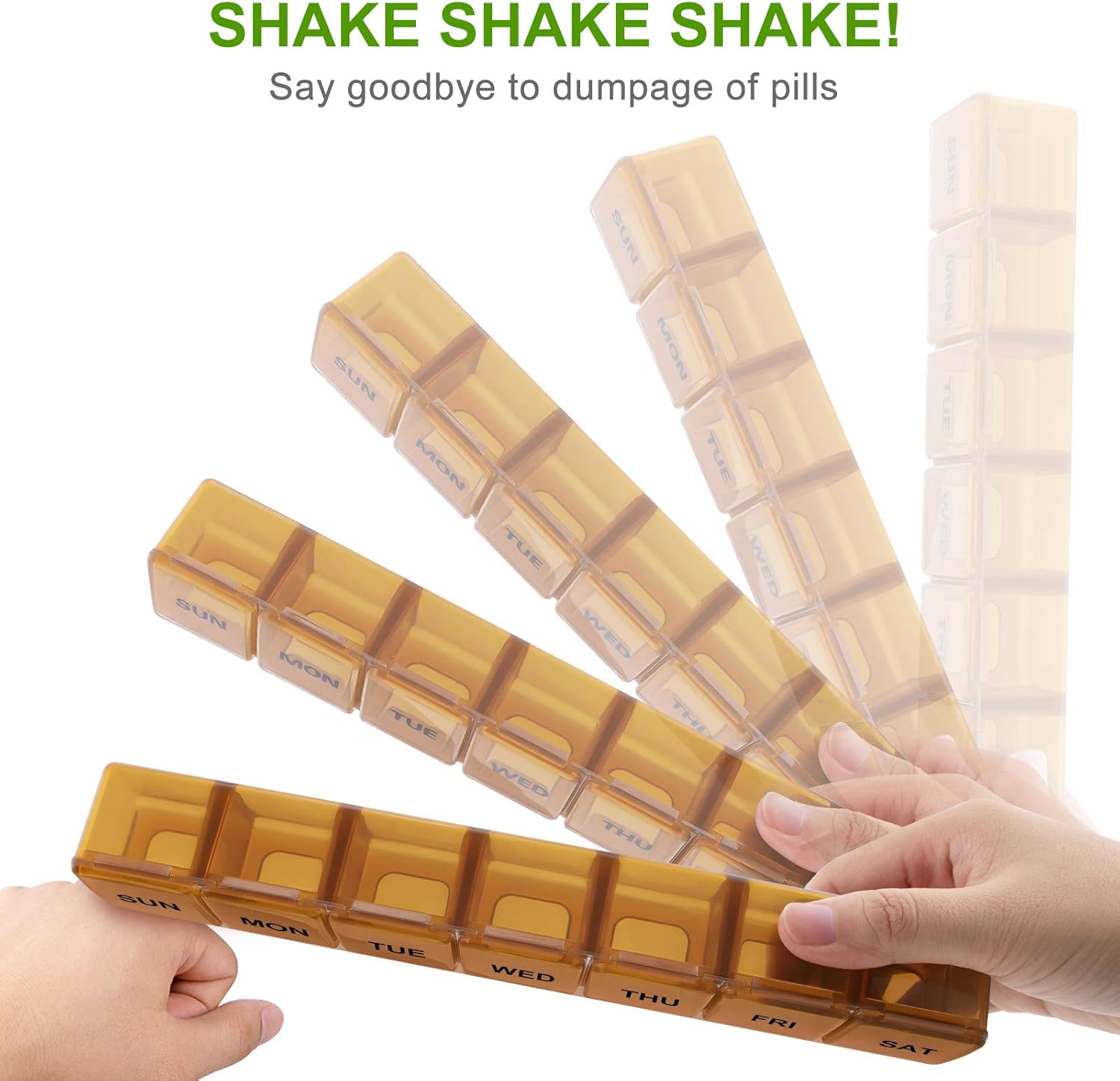 - User-Friendly Medication Organizer - The snap-shut lids of this pill holder stay closed tightly, would never pop up accidentally. Meanwhile the pill box 7 day is easy to open, really friendly to people with elderly, kids or arthritis