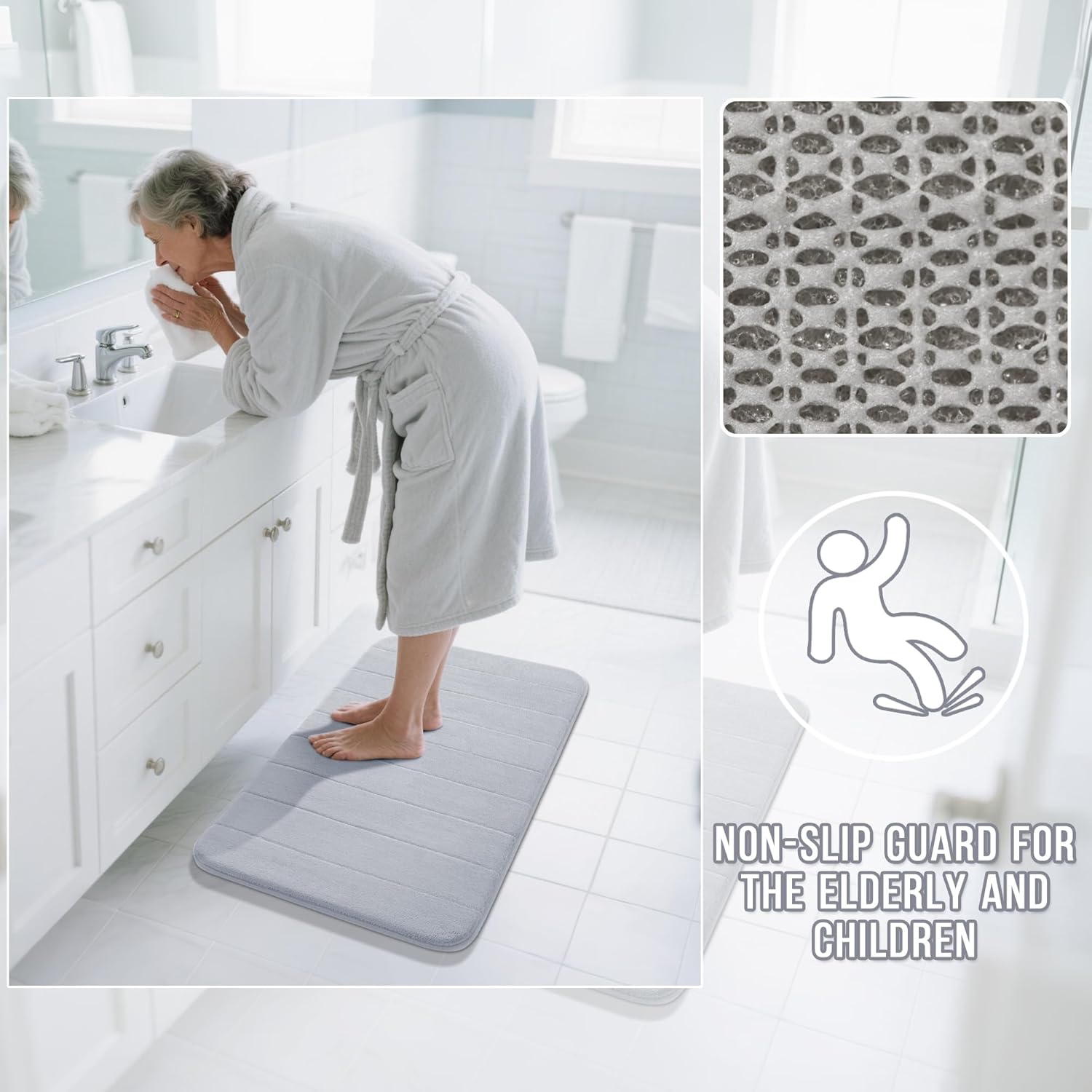 Yimobra Memory Foam Bath Mat, Super Soft Absorbent Bathroom Rug Non Slip 31.5x20 Inch, Quick Dry, Machine Washable Floor Carpet for Tub Shower, Home Decor Accessories, Silver