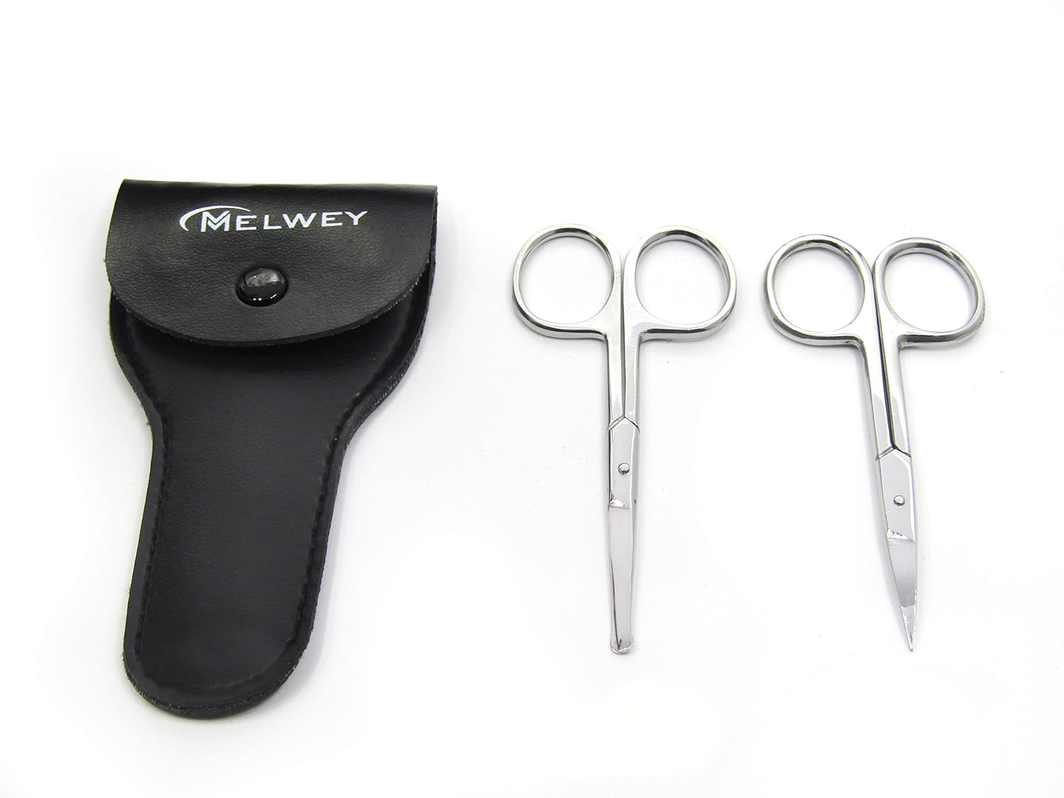- [ TWIN PACK ] - 2-PC complete set of premium facial hair scissors for all types of your facial grooming needs, rounded and curved shapes scissors are perfect for eyebrows, noses, Moustache, Beard Trimming, baby nails, and any body hair.