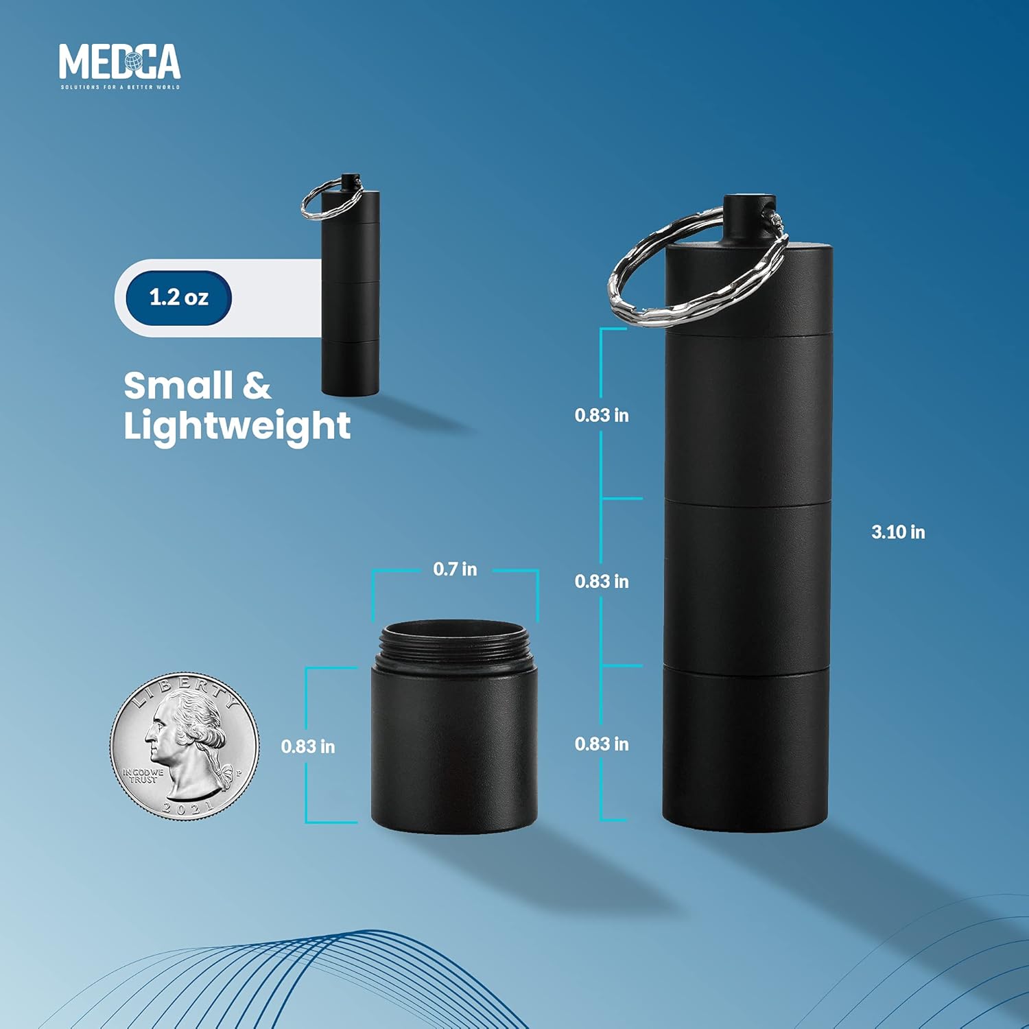 MEDCA Portable Keychain Pill Case Holder - Aluminium Alloy Mini Pill Organizer Case Container, Waterproof Mini Pill Box for Medication, Supplements, and Vitamins (Black+Matt Finished+2 Pack)
