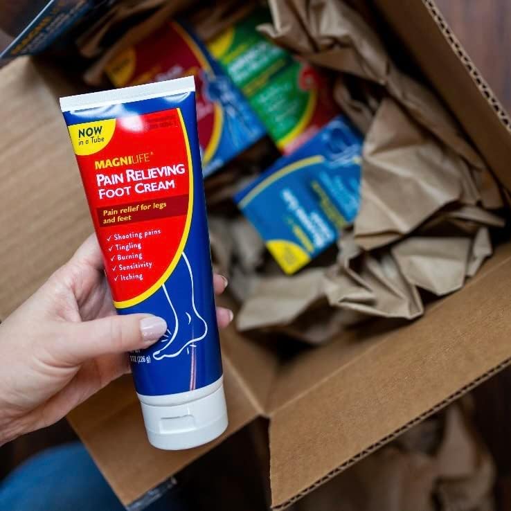 MagniLife Pain Relieving Foot Cream Soothing Relief for Soreness, Pain, Burning, Tingling, Itching or Sensitivity in Feet & Legs - All-Natural Moisturizing Topical - Petroleum-Free - 4oz Tube