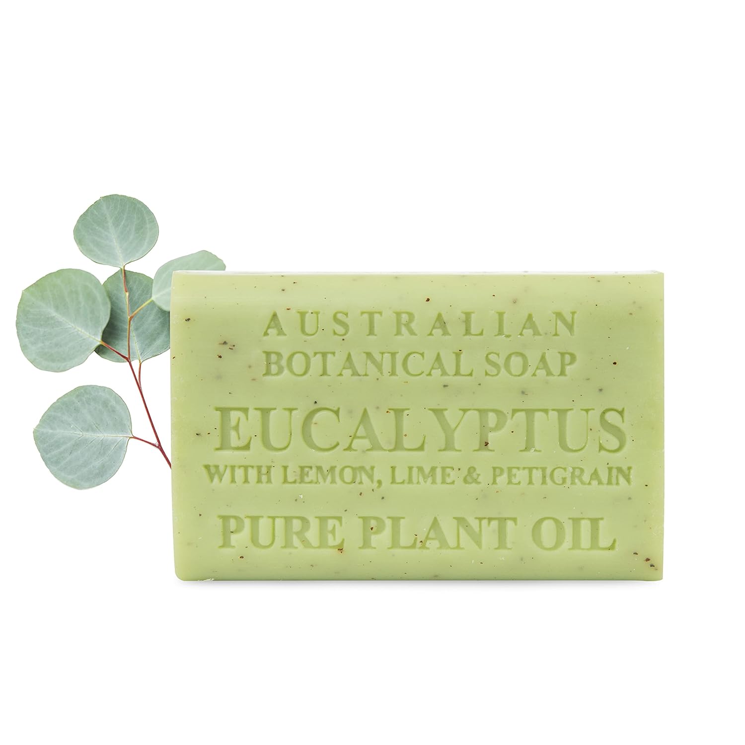 - Eucalyptus Soap - Formulated for those looking for a gentle cleansing soap bar. Our Eucalyptus with Lemon, Lime, and Petitgrain Soap will leave your skin feeling clean and soft. The crisp scent of Australian Eucalyptus Oil will awaken the senses, while the added Lemon Myrtle leaf with gently exfoliate to help promote your skin's natural radiance.