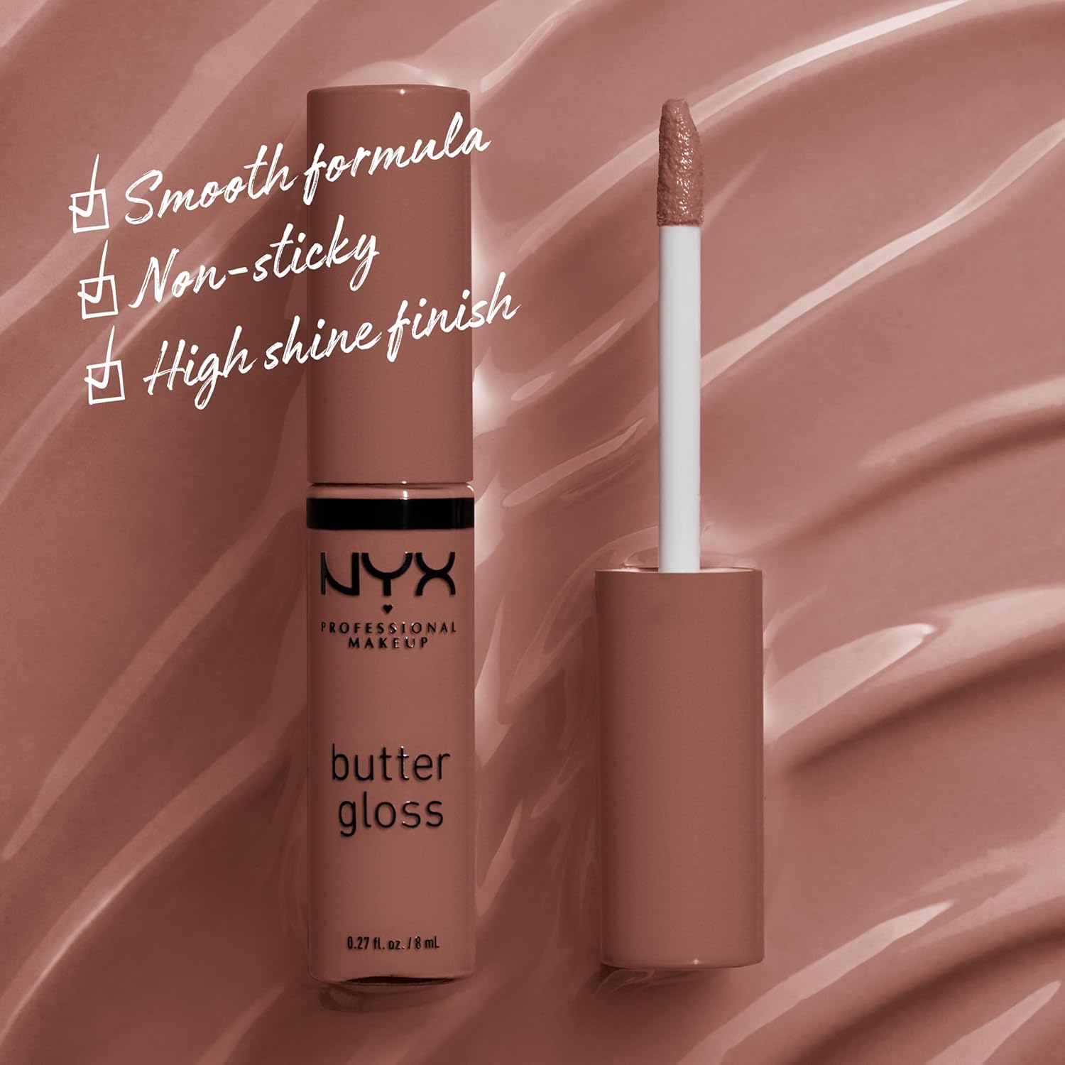 NYX PROFESSIONAL MAKEUP Butter Gloss Brown Sugar, Non-Sticky Lip Gloss - Butterscotch (Neutral Light Brown)