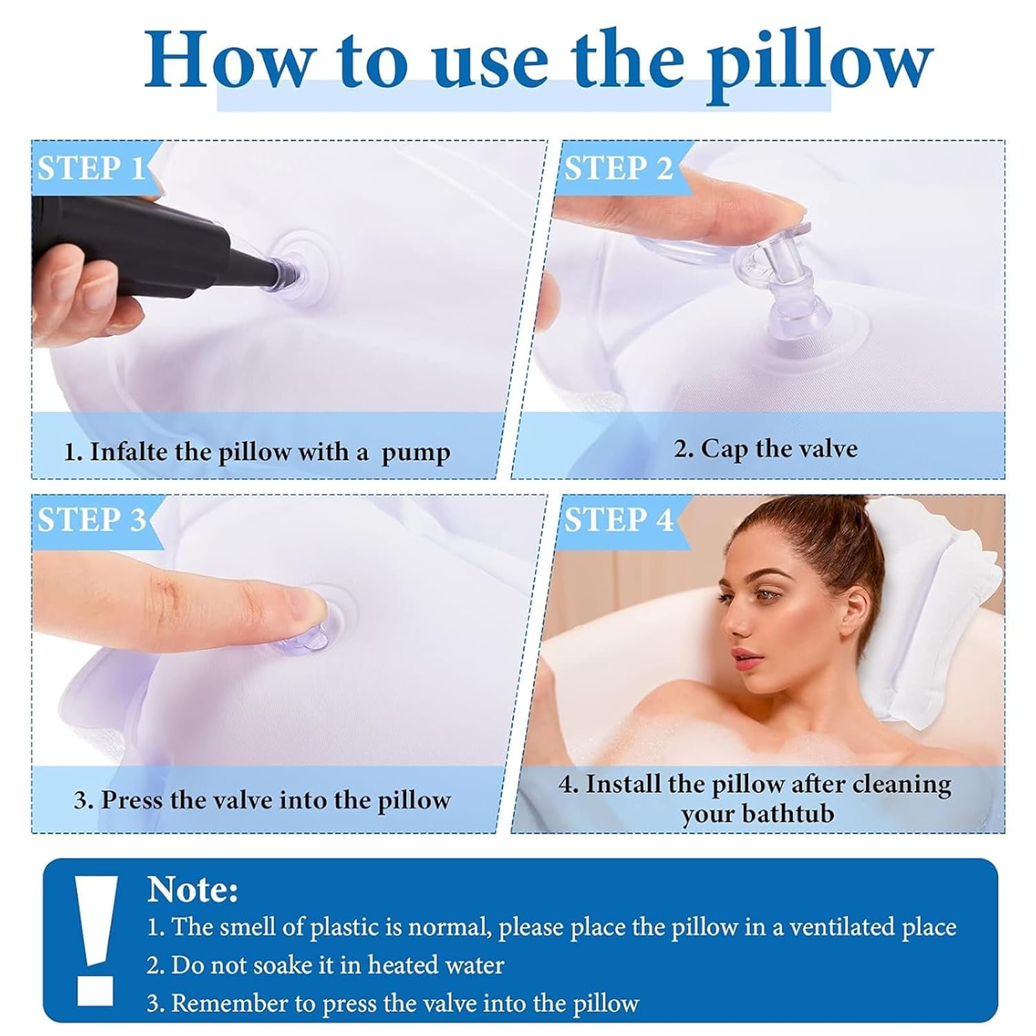 - What you will get: the package comes with 2 pieces of white inflatable bath pillow, sufficient for you and your families, and large enough to provide support for your neck