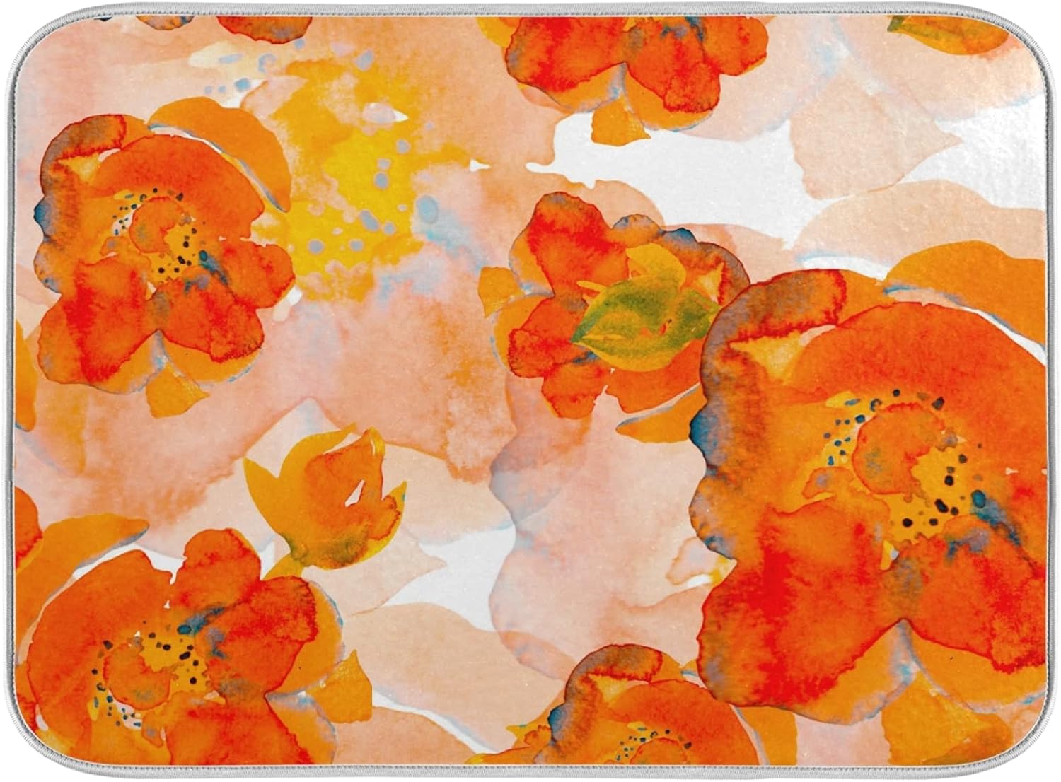 Corn Poppy Orange Flower Microfiber Dish Drying Mat 18'' x 24'' for Kitchen Counter Drying Pad Dish Drainer Mats Absorbent Dish Draining Mat Extra Large