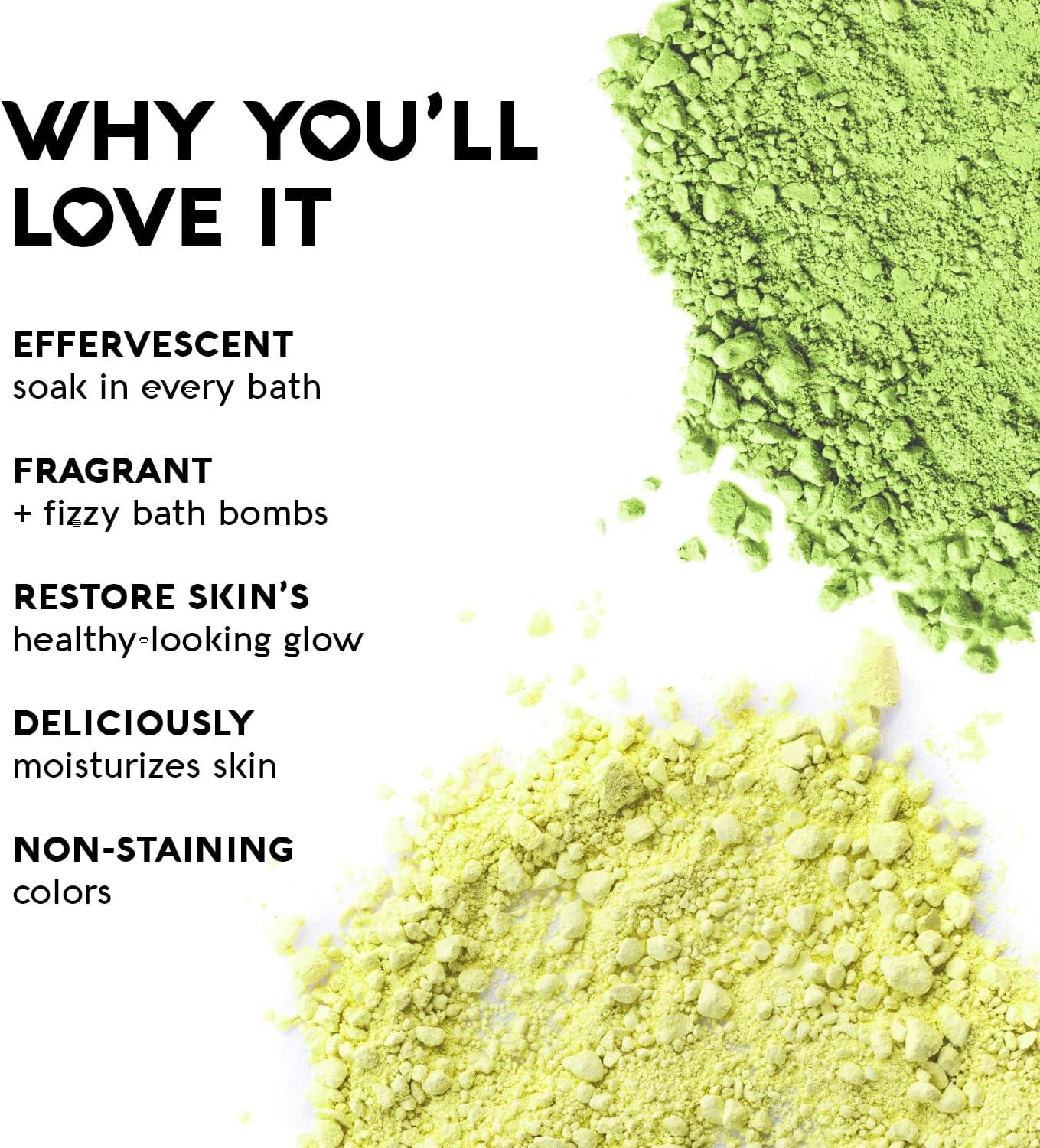 - Clean Formula: Vegan and cruelty-free bath bombs; free from parabens, sulfates, phthalates, gluten, and petrochemicals